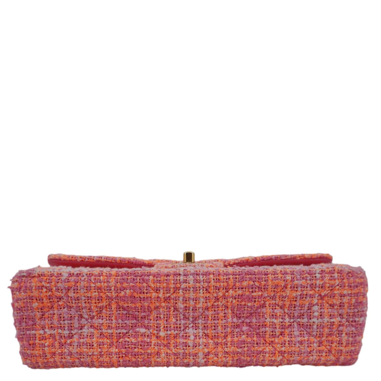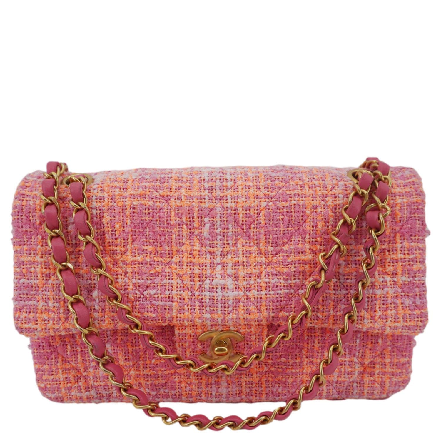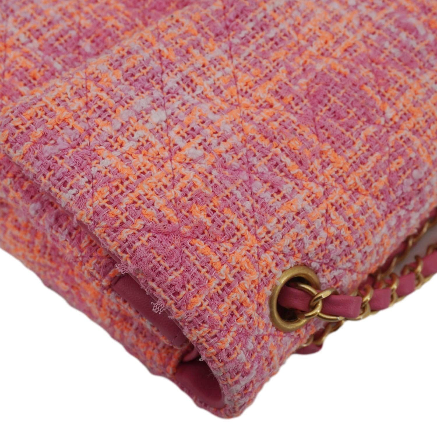 CHANEL Rectangular Flap Medium Quilted Tweed Shoulder Bag Pink