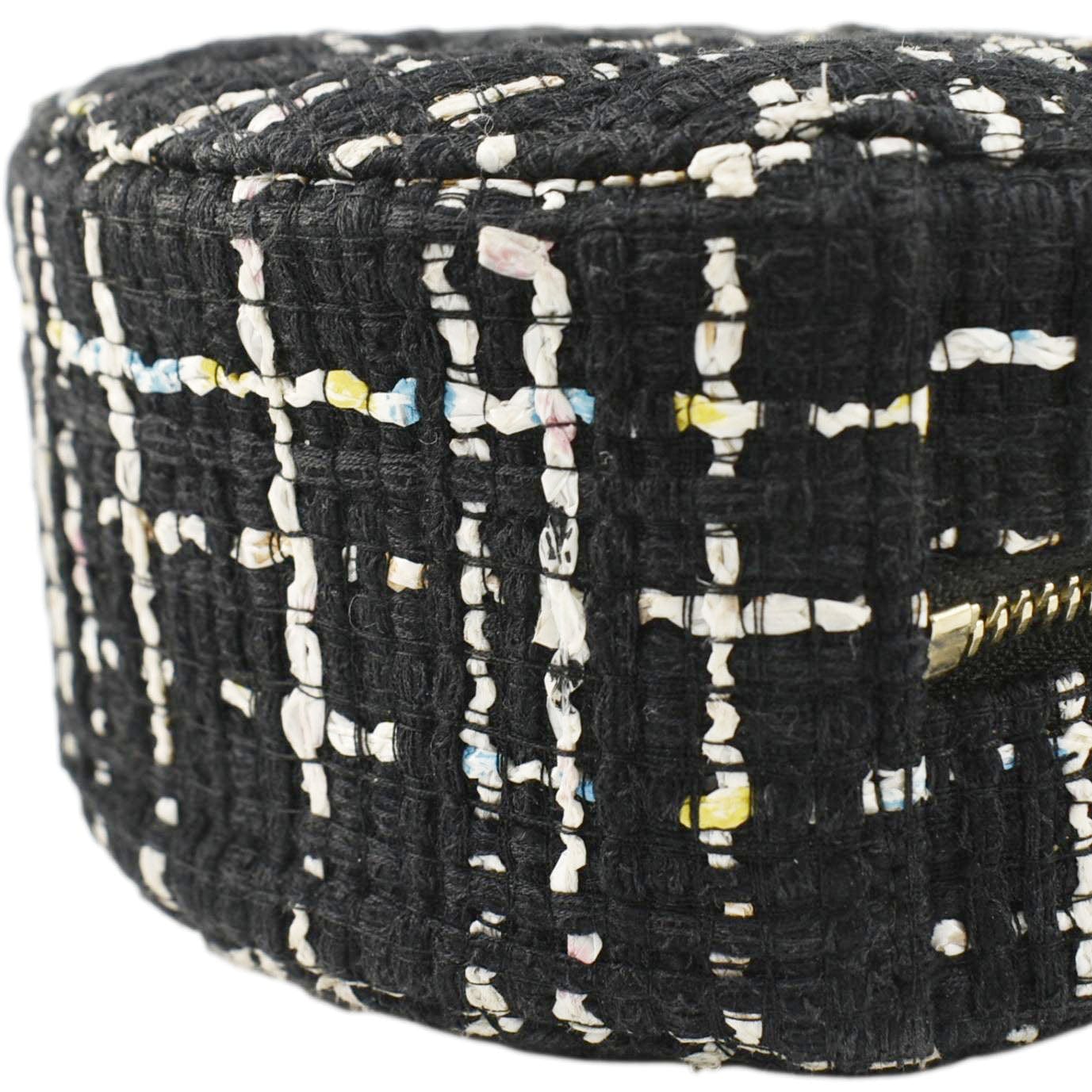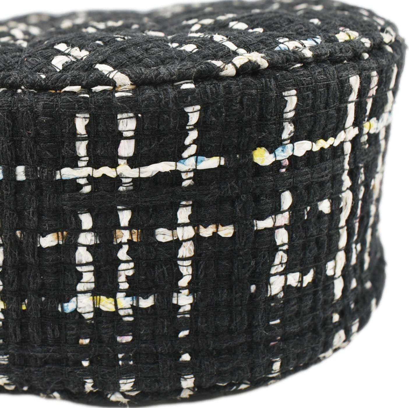 Round Quilted Tweed Clutch Crossbody Bag Black