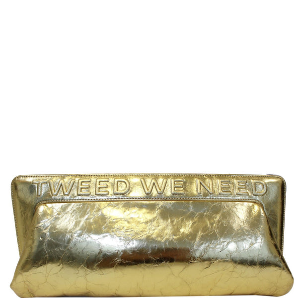 Tweed We Need Metallic Lambskin Leather Clutch Gold