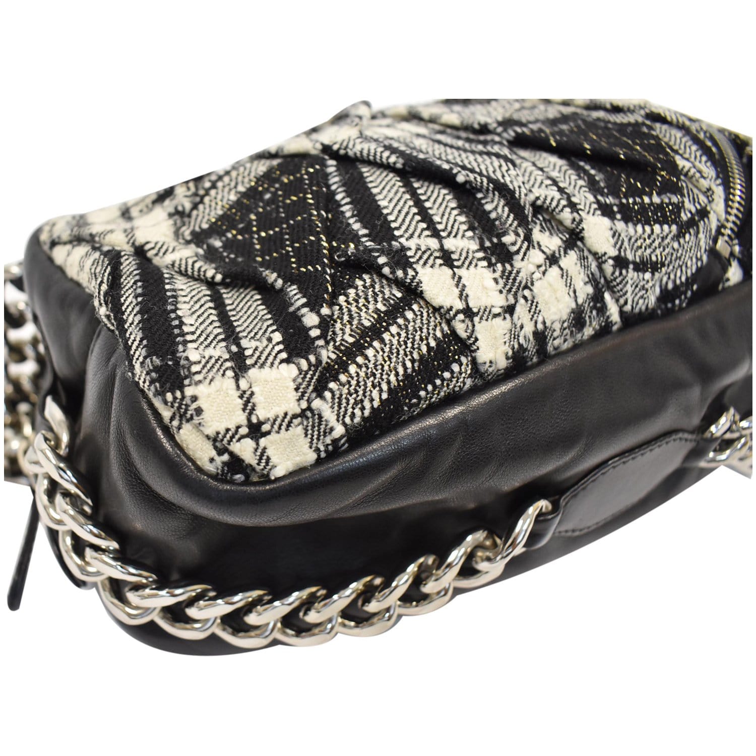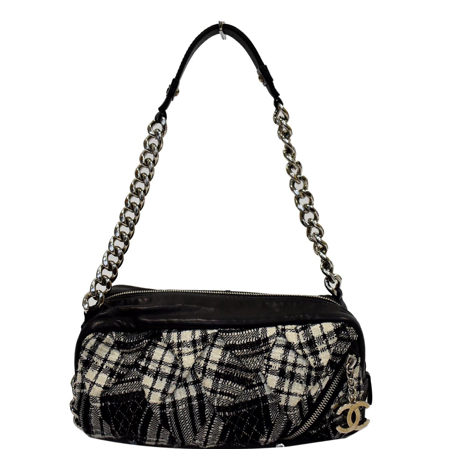 Chanel Twisted Zipper Tweed Leather Shoulder Bag Black