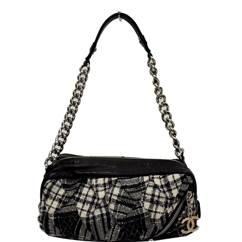 CHANEL Twisted Zipper Tweed Leather Shoulder Bag Black