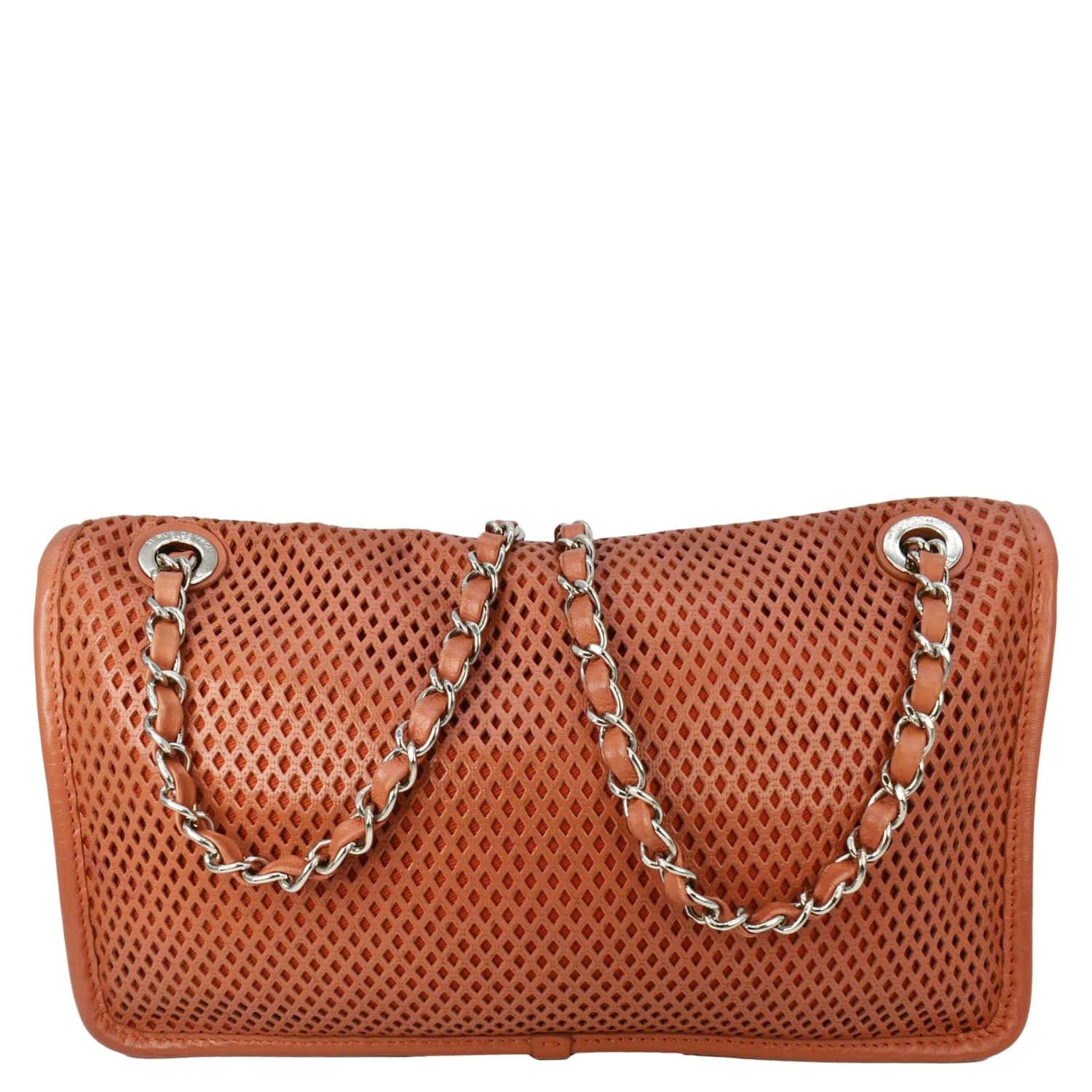 Up in the Air Classic Flap Perforated Calfskin Shoulder Bag Orange