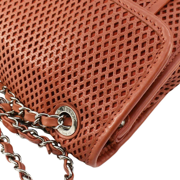 CHANEL Up in the Air Classic Flap Perforated Calfskin Shoulder Bag Orange