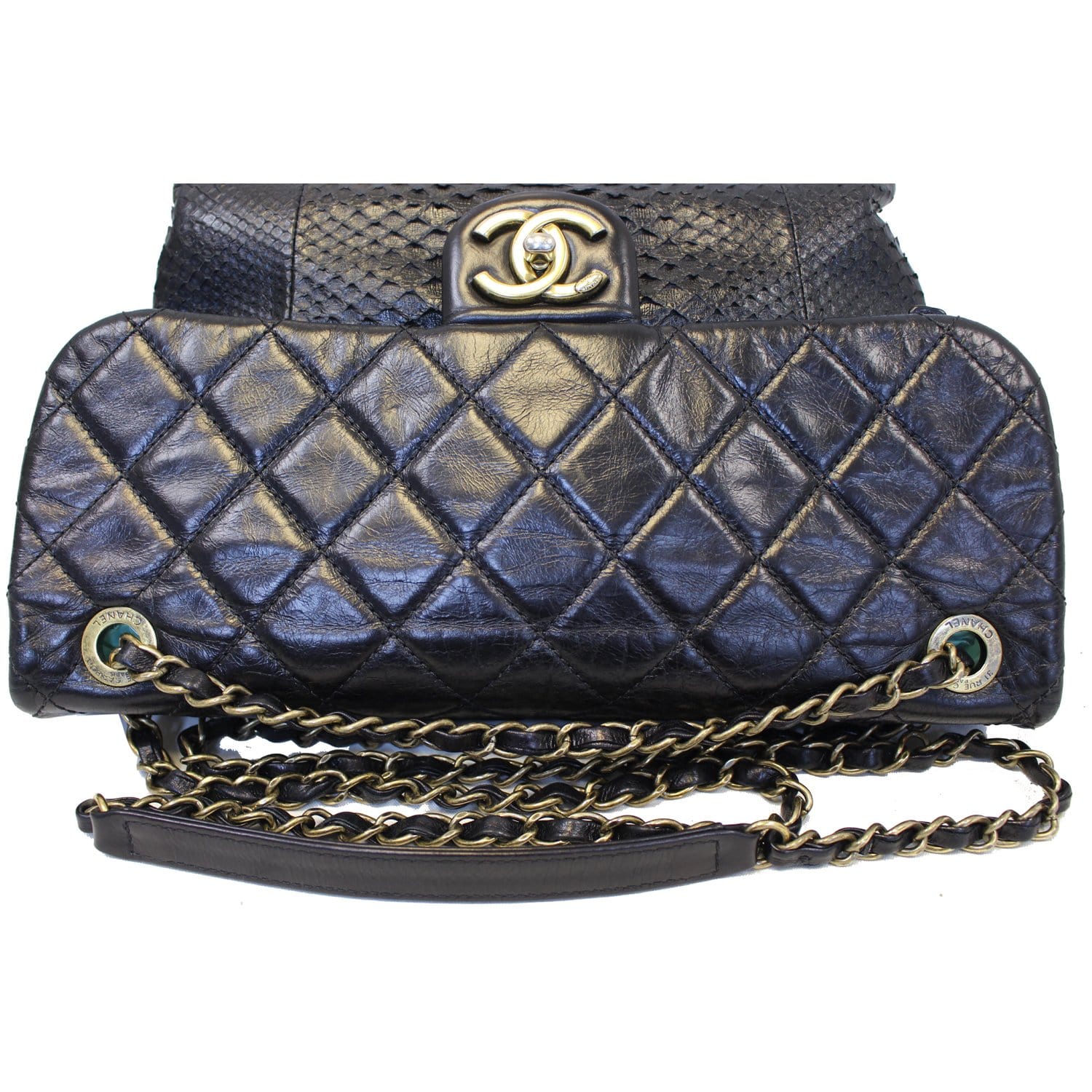CHANEL Urban Mix Flap Calfskin Python Shoulder Bag Black