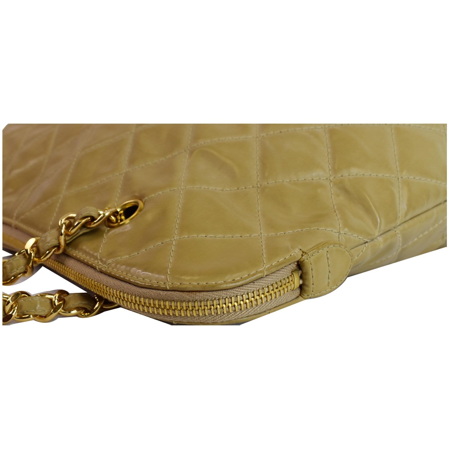 CHANEL Vintage Patent Leather Shoulder Bag Tan 3921871