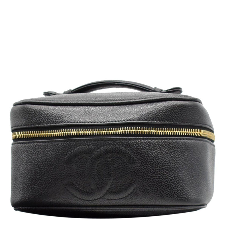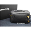 CHANEL Vintage Vanity Case Leather Chain Cosmetic Bag Black