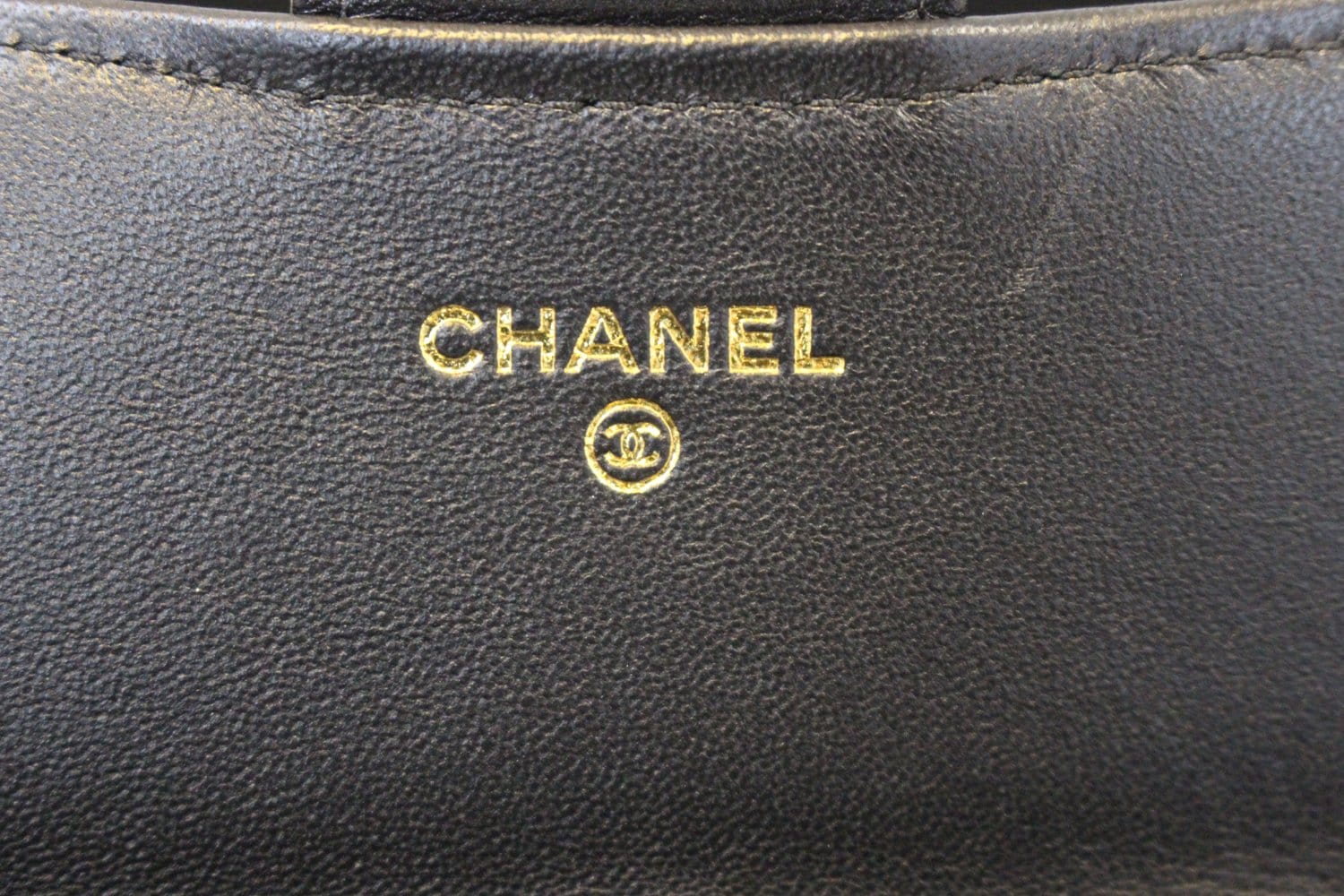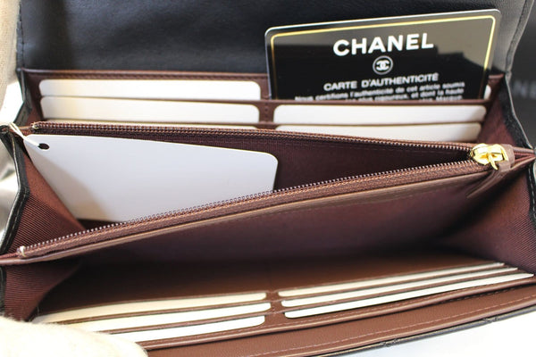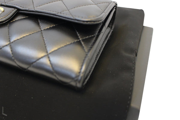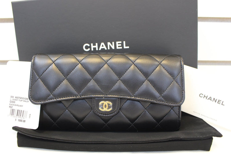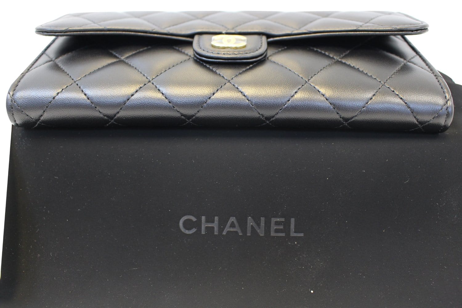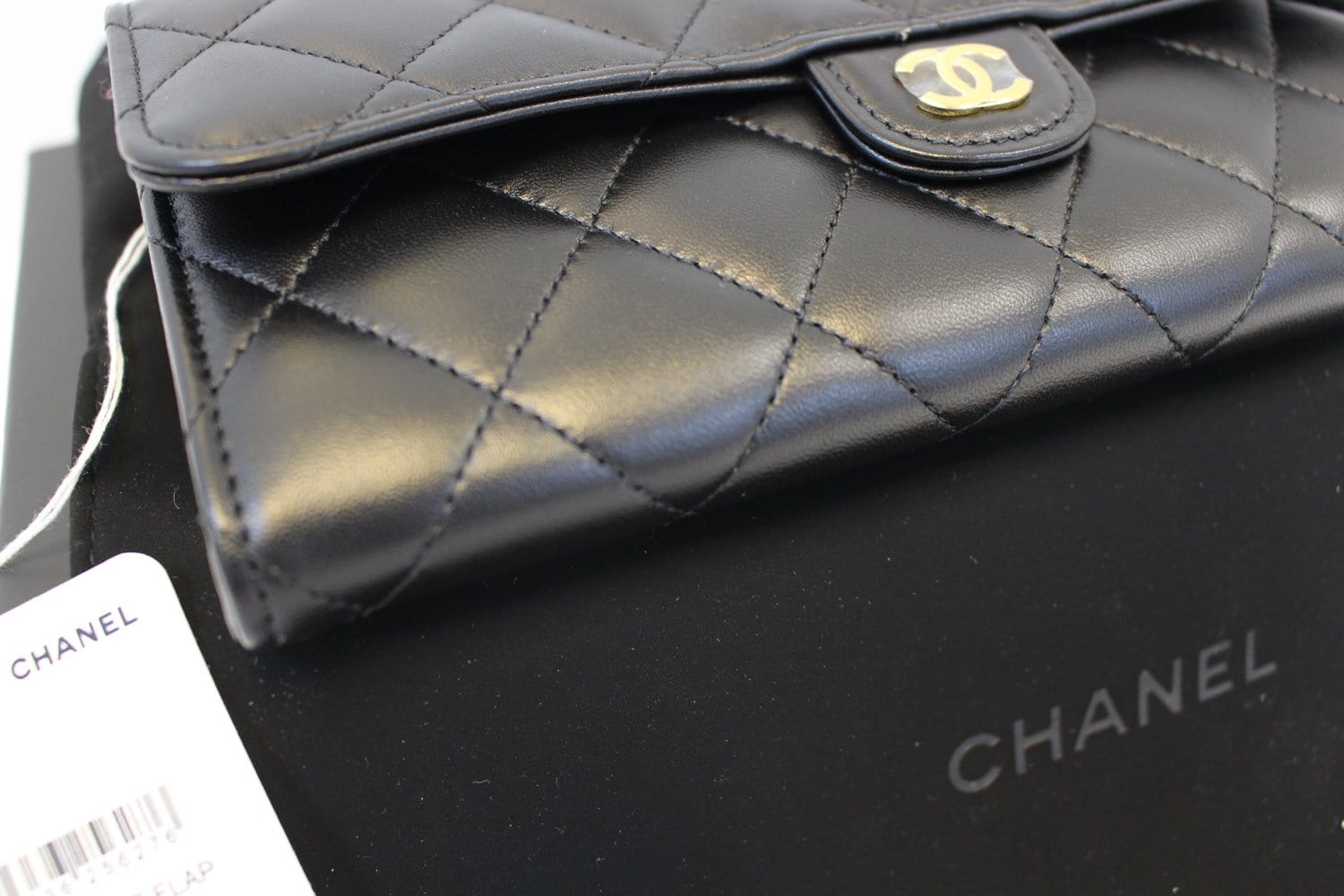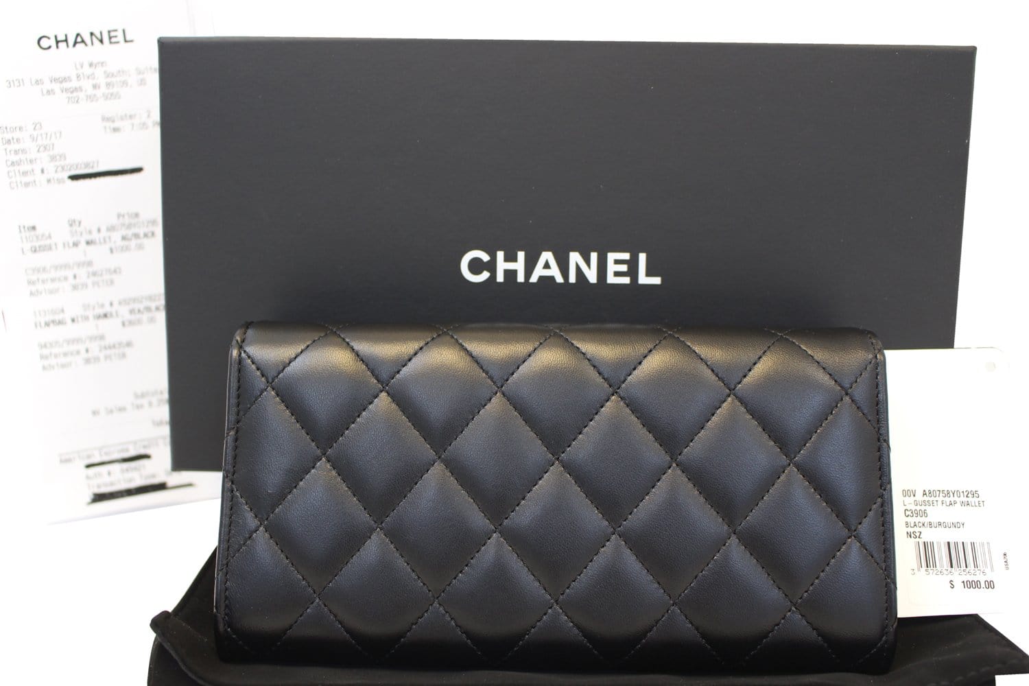 CHANEL Wallet Leather Black Quilted Lambskin Long Flap