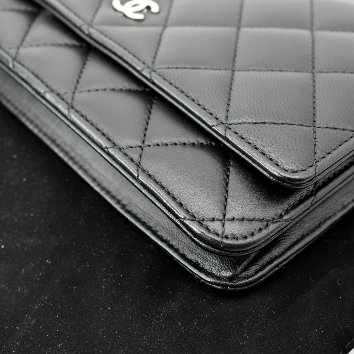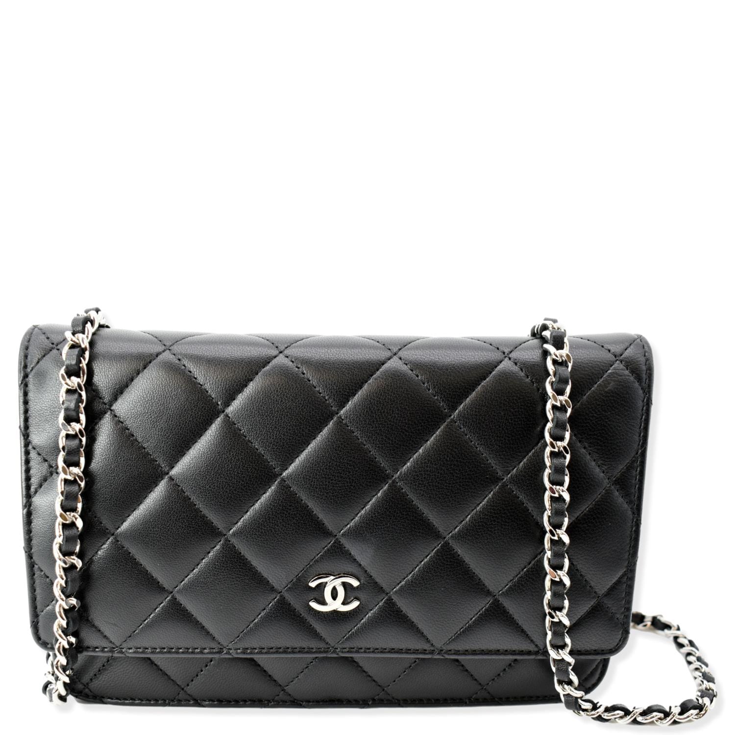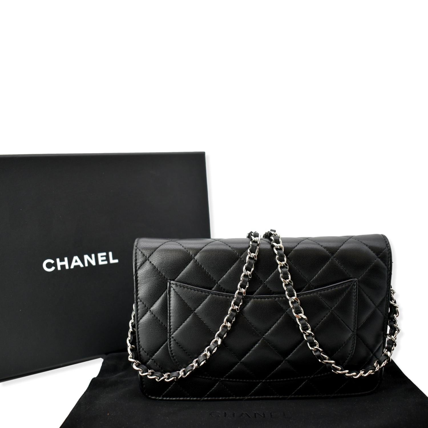 CHANEL Wallet On Chain Lambskin Leather WOC Crossbody Bag Black