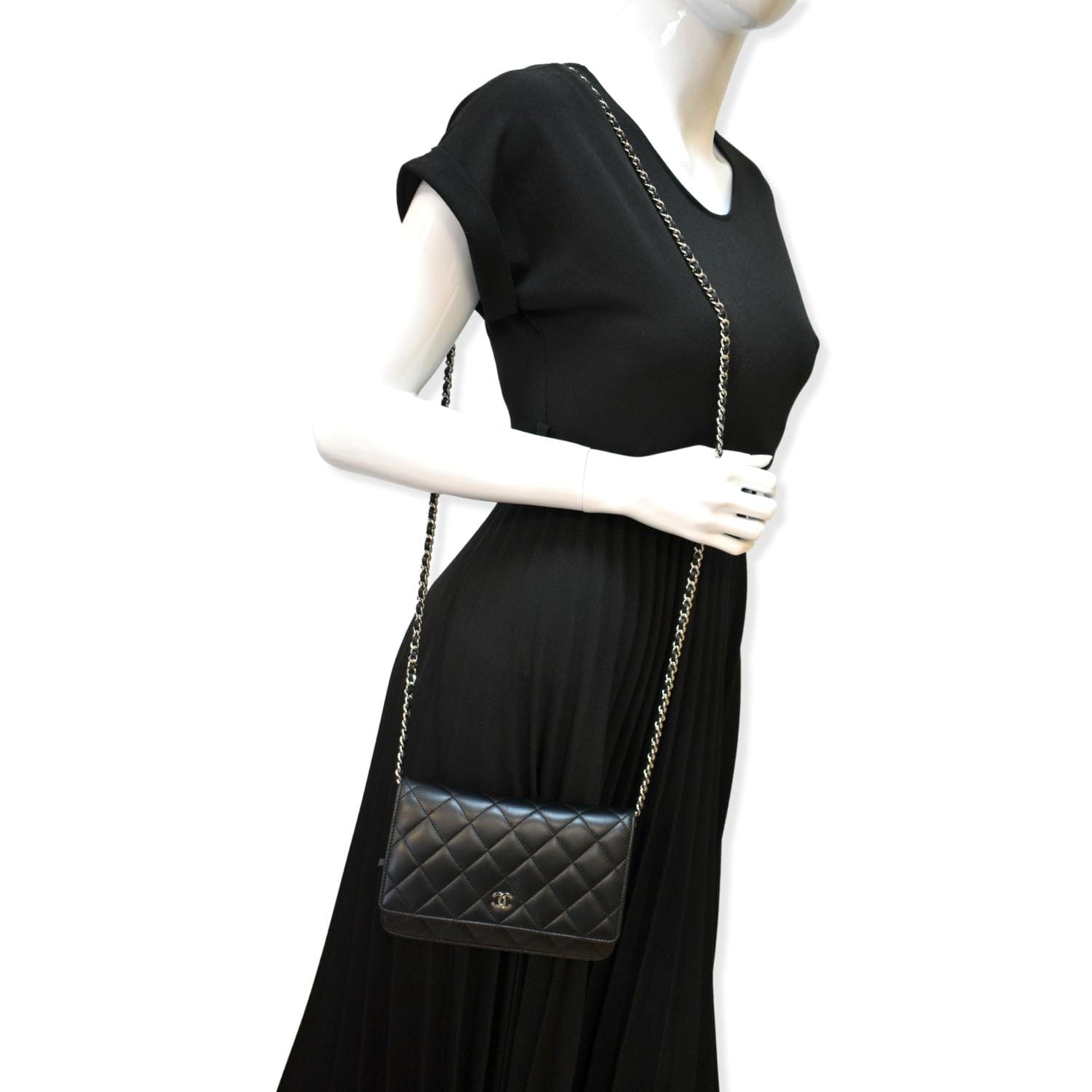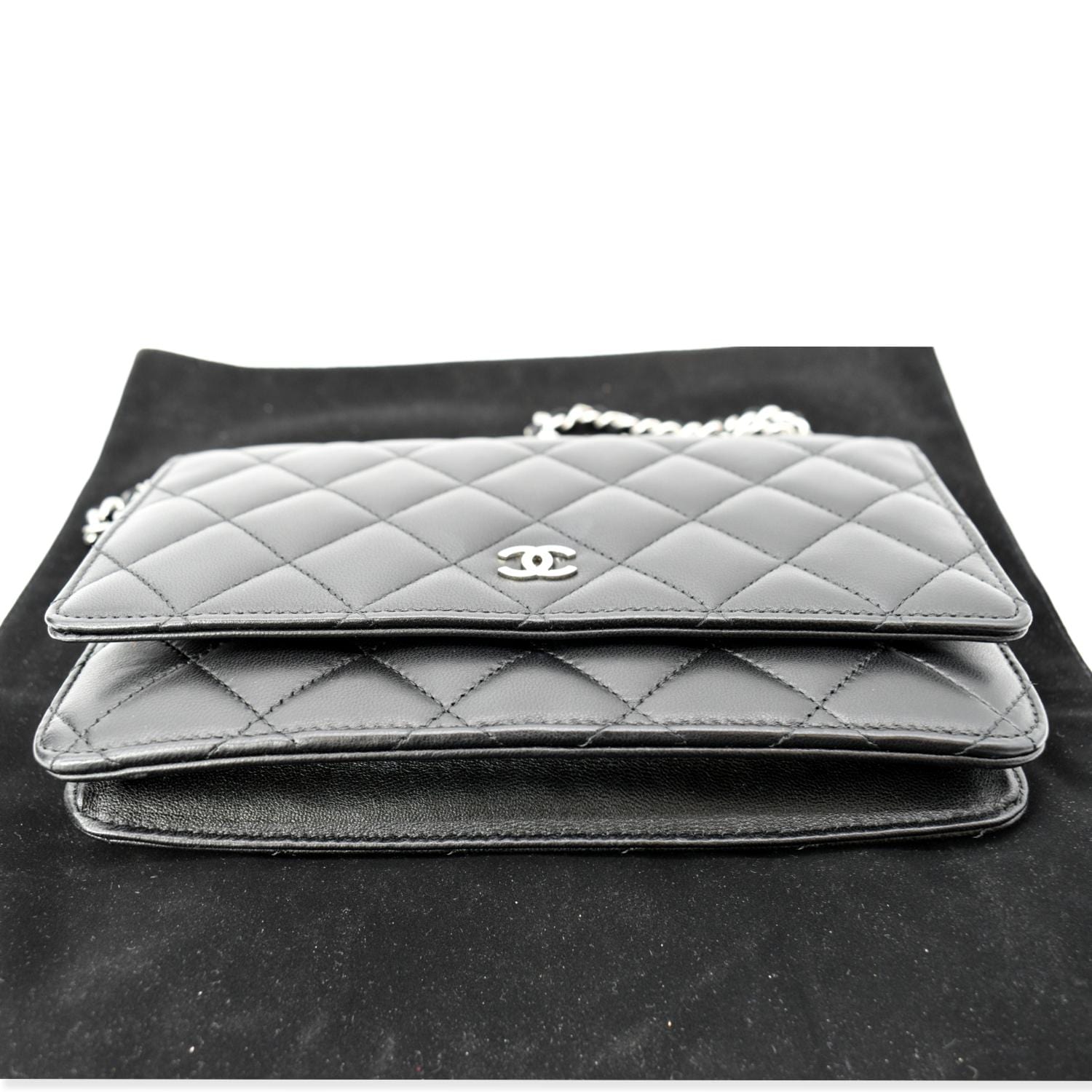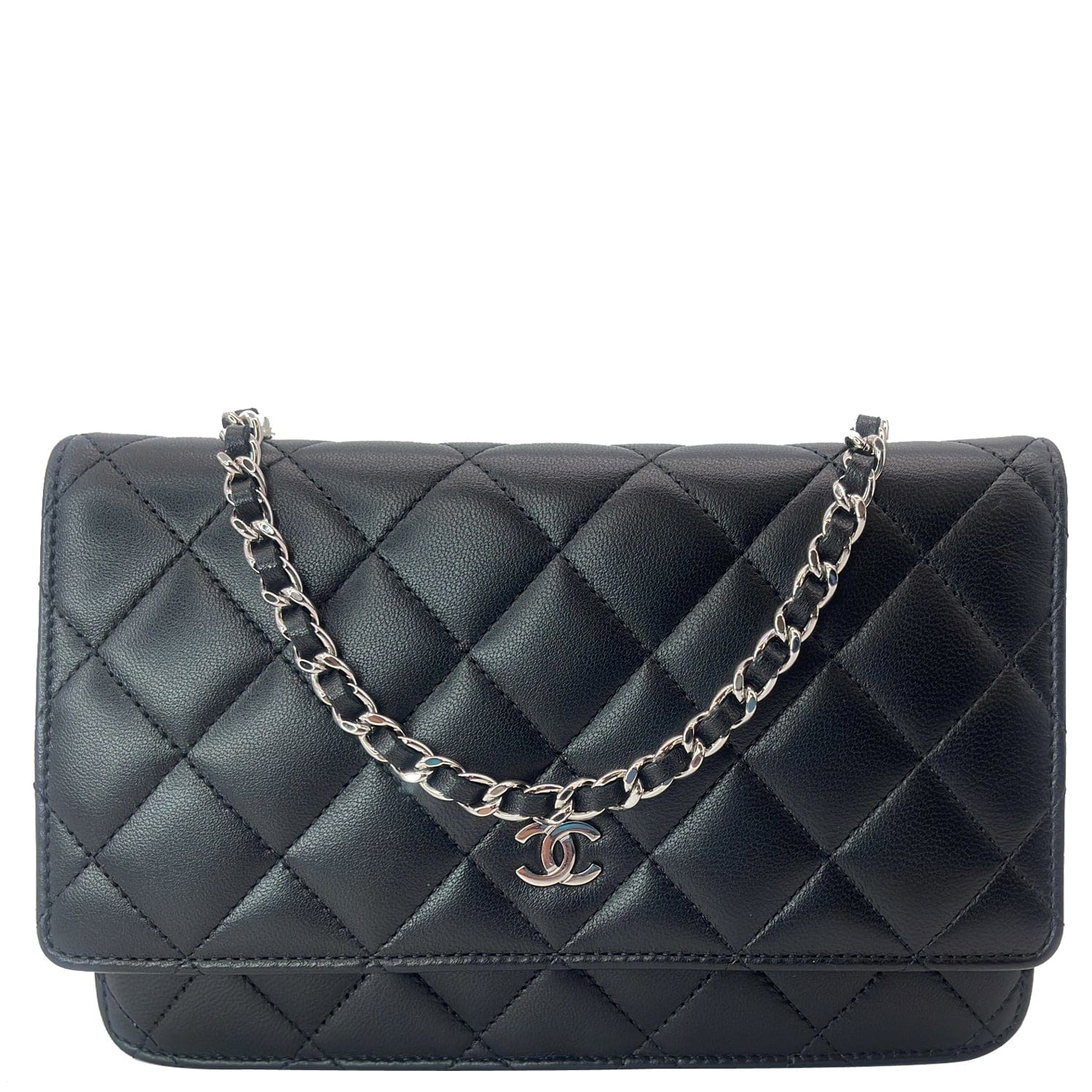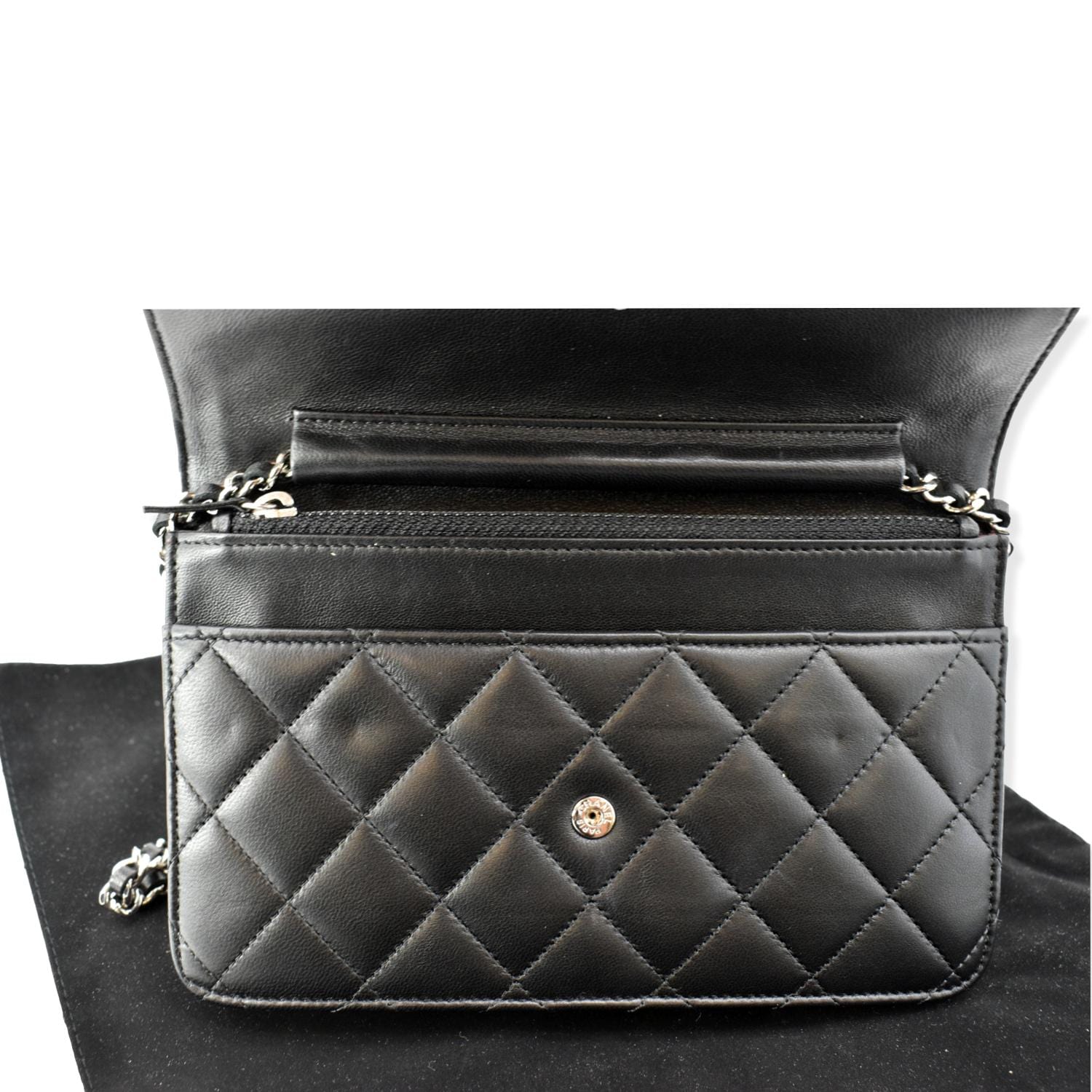 CHANEL Wallet On Chain Lambskin Leather WOC Crossbody Bag Black