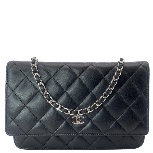 Wallet On Chain Lambskin Leather WOC Crossbody Bag Black