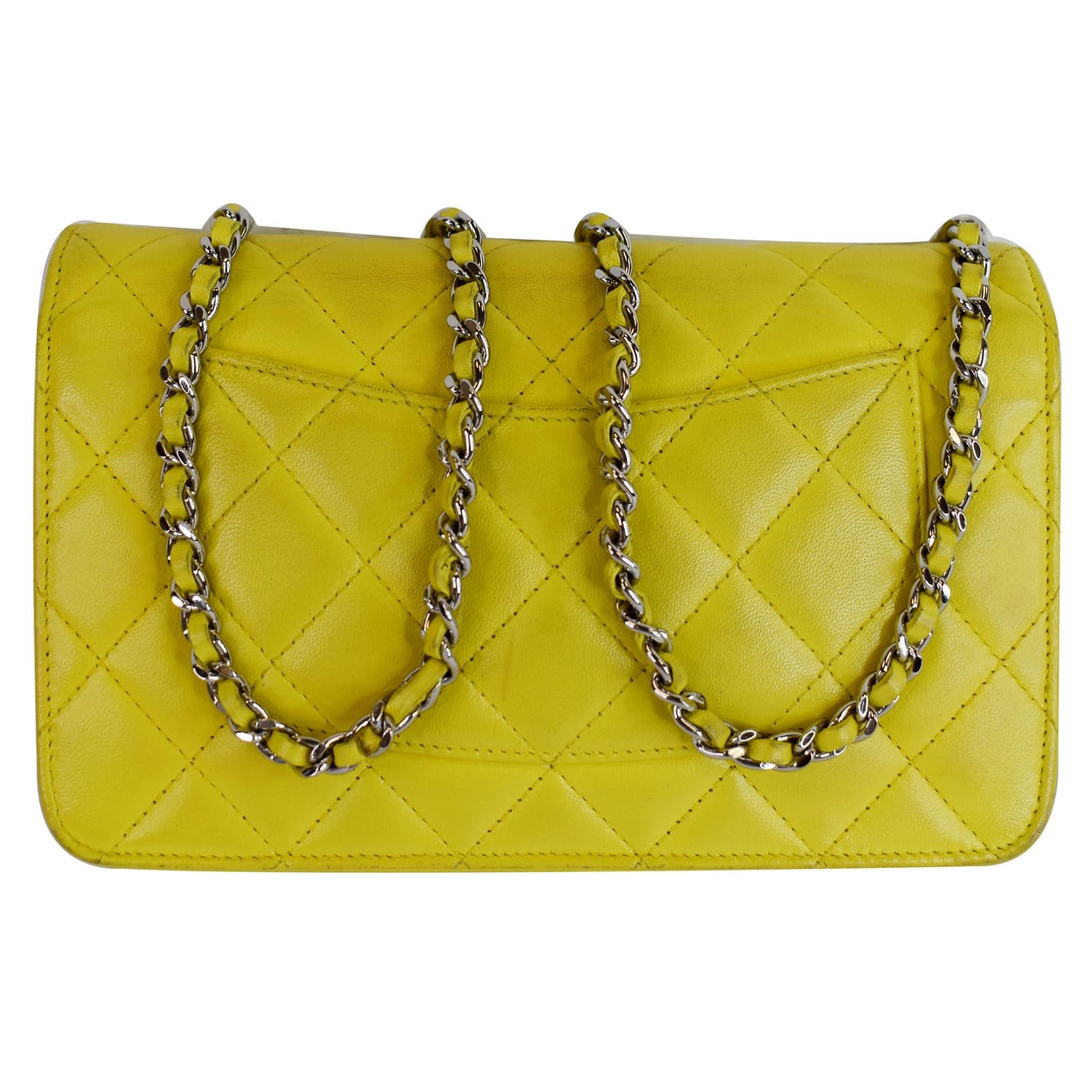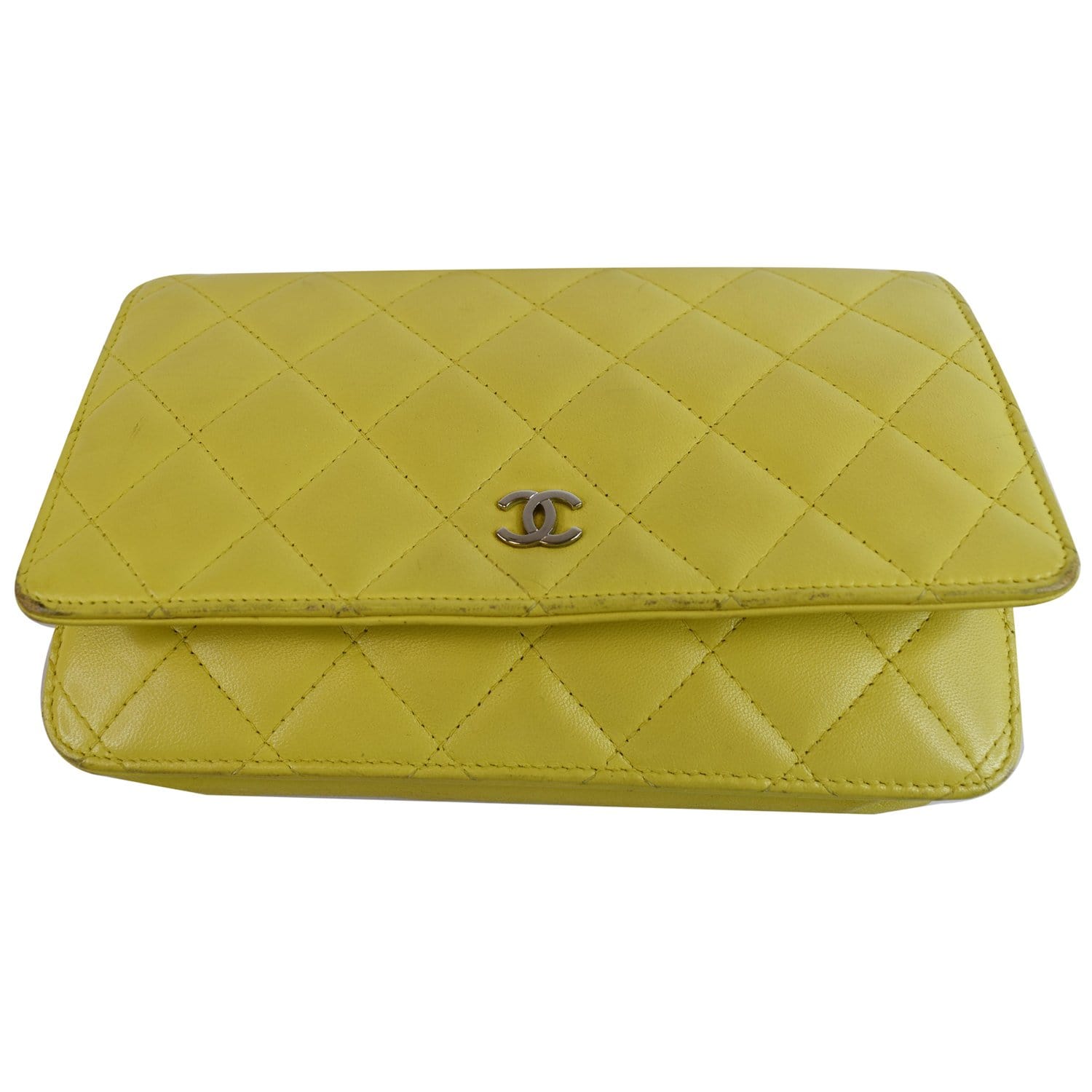 CHANEL Wallet On Chain Lambskin Leather WOC Crossbody Bag Yellow