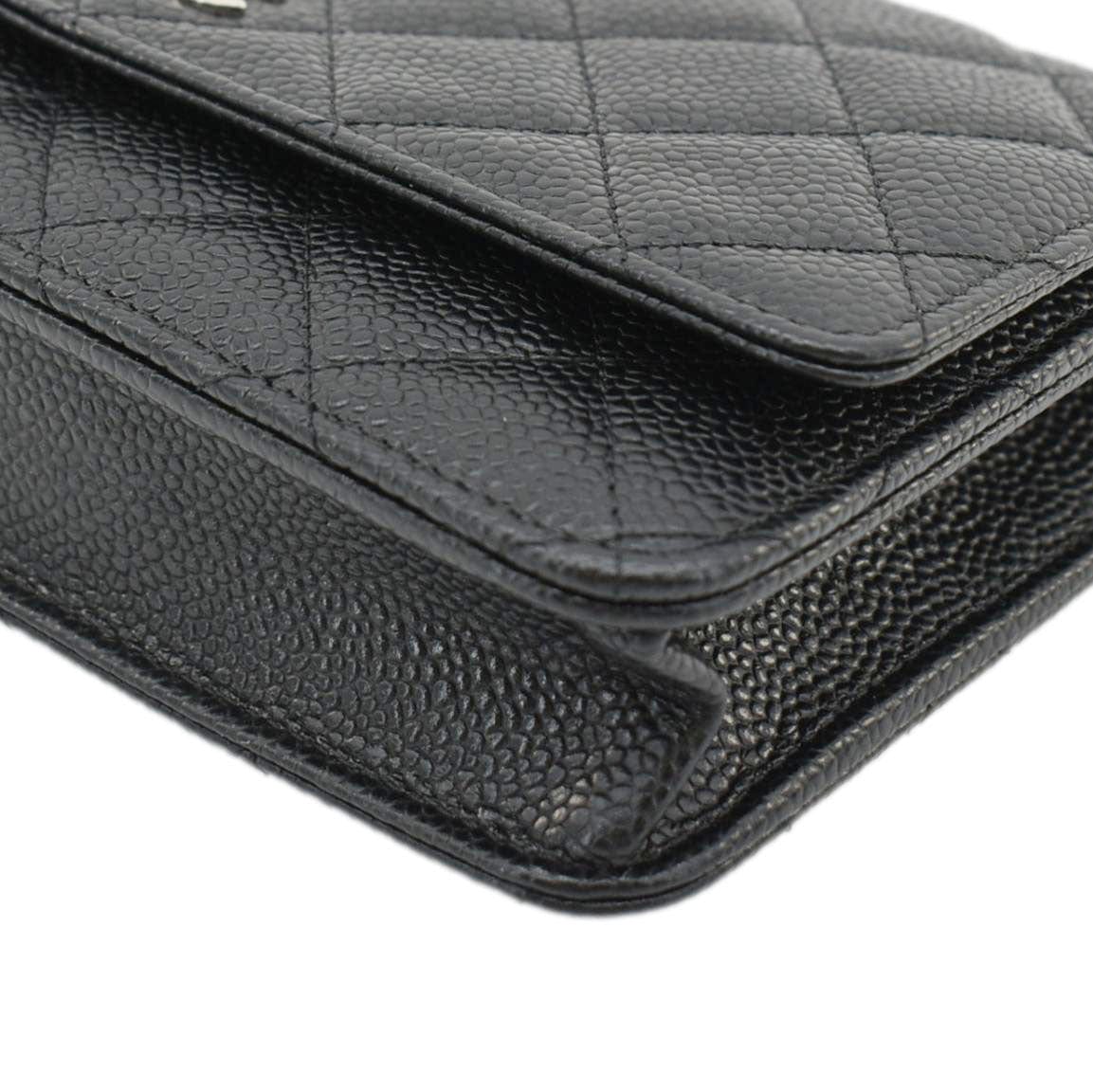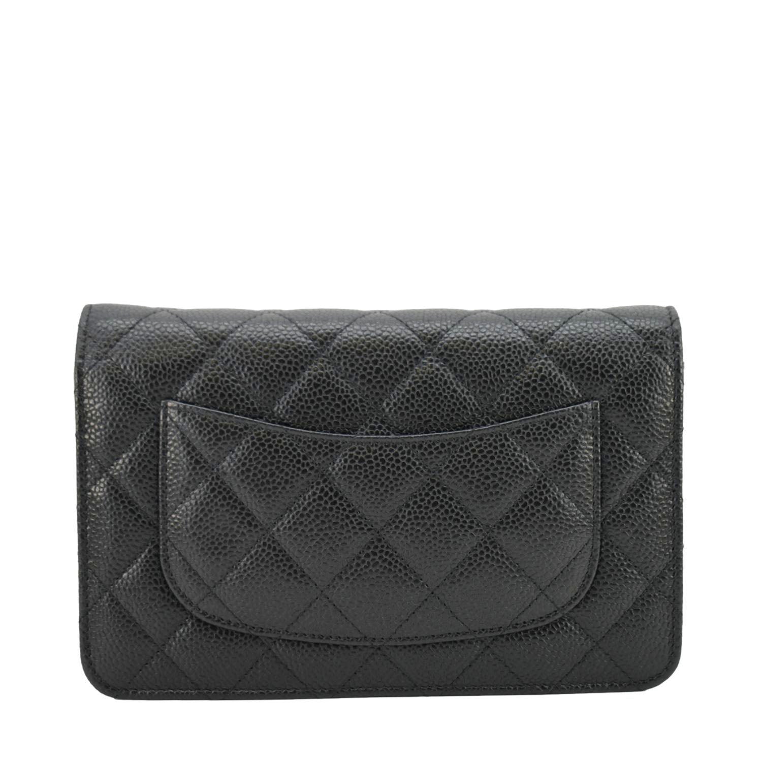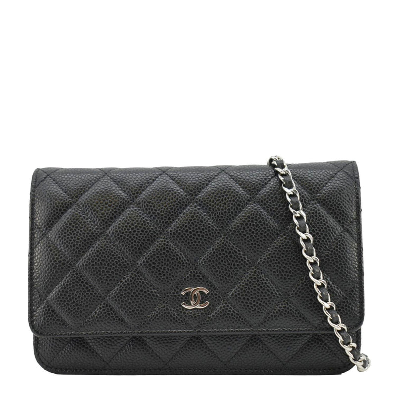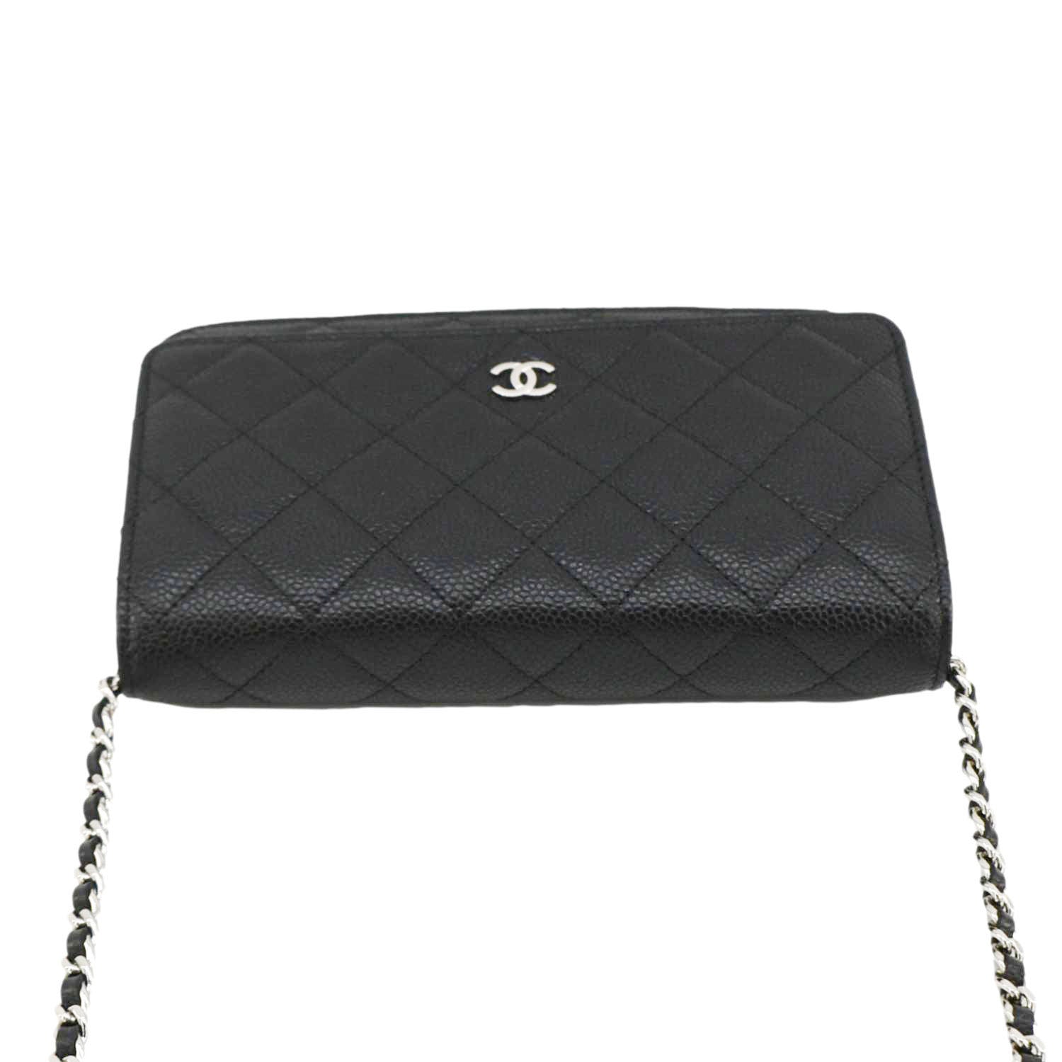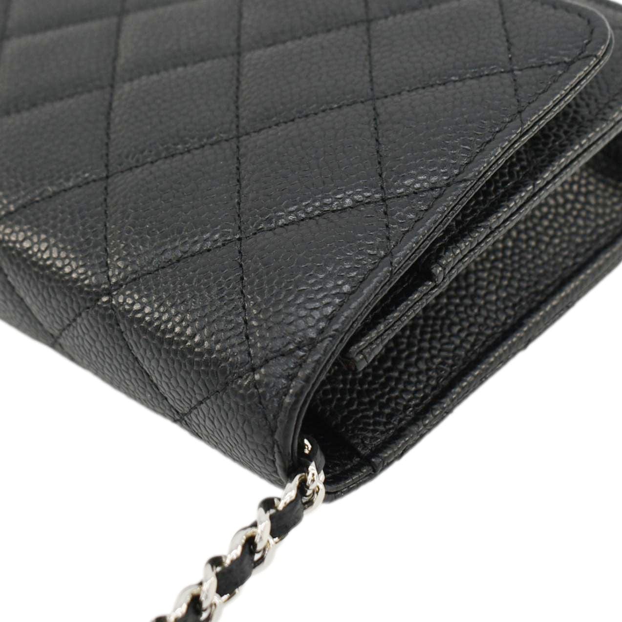 Wallet On Chain Quilted Caviar Leather Crossbody Bag Black