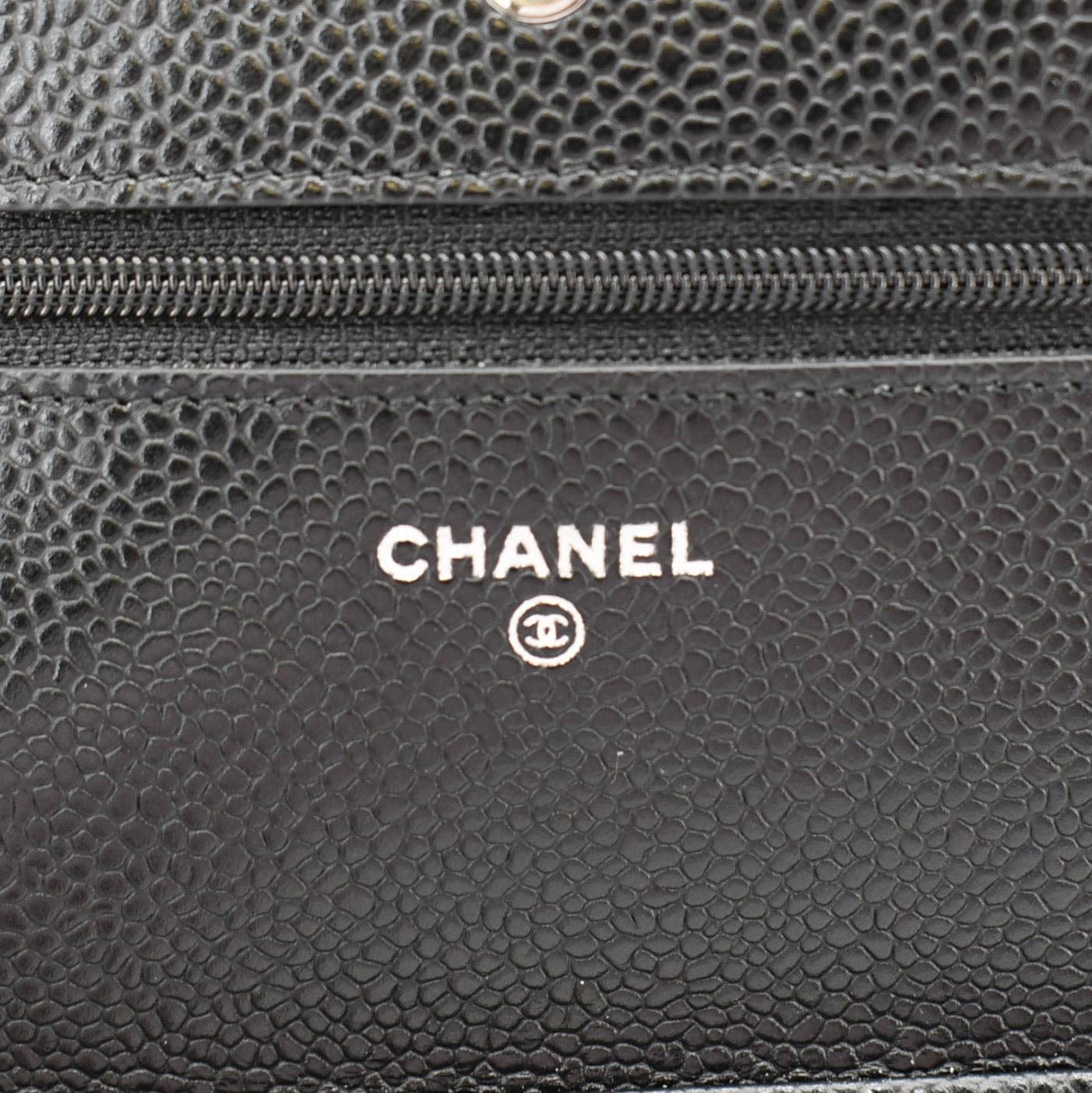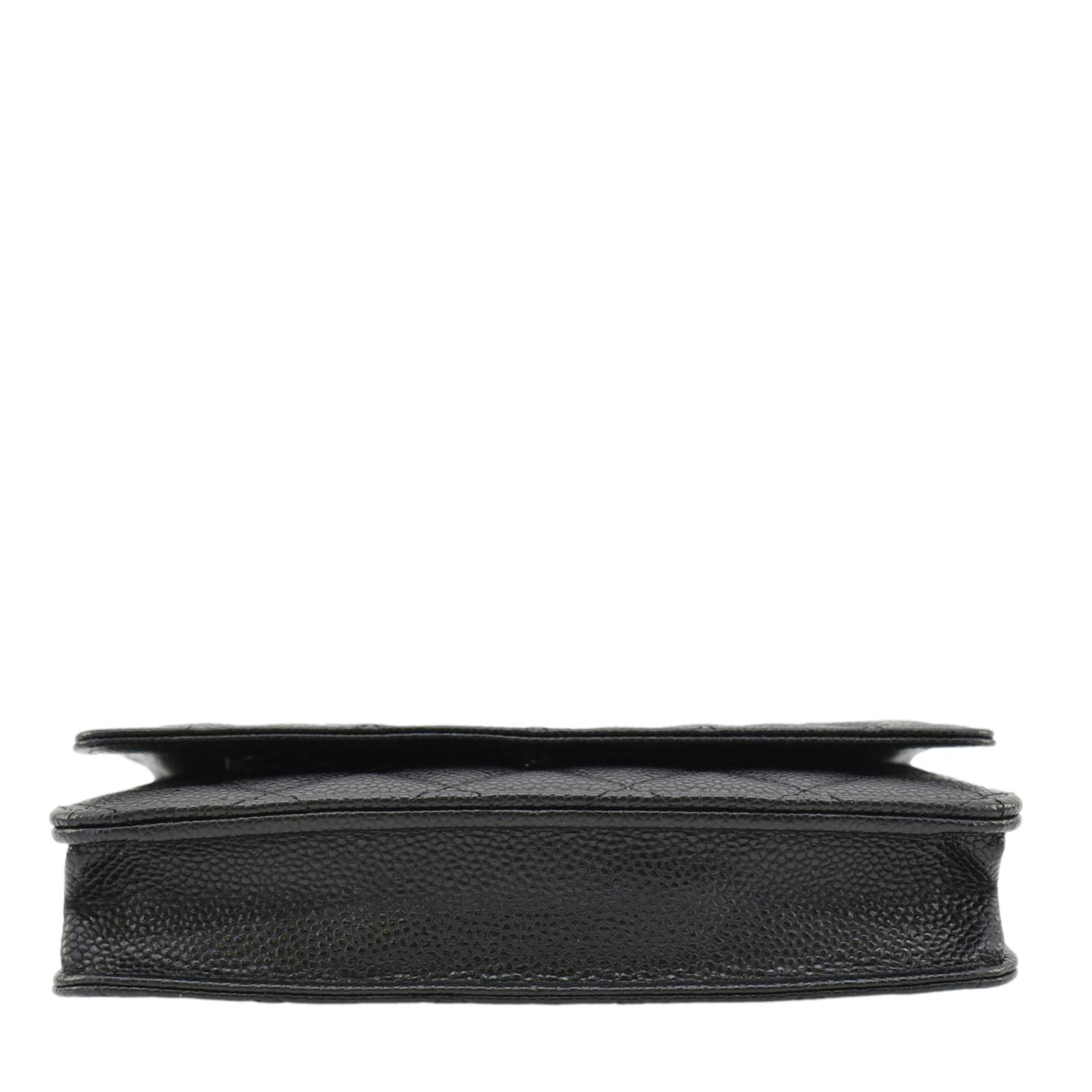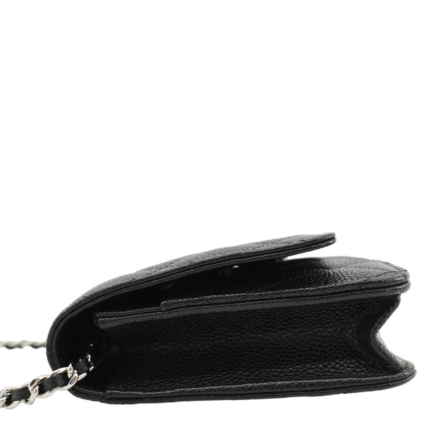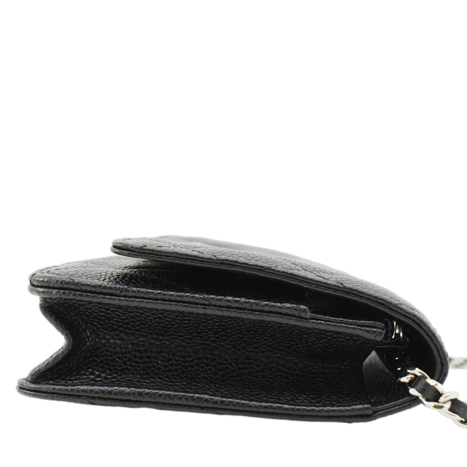 Wallet On Chain Quilted Caviar Leather Crossbody Bag Black