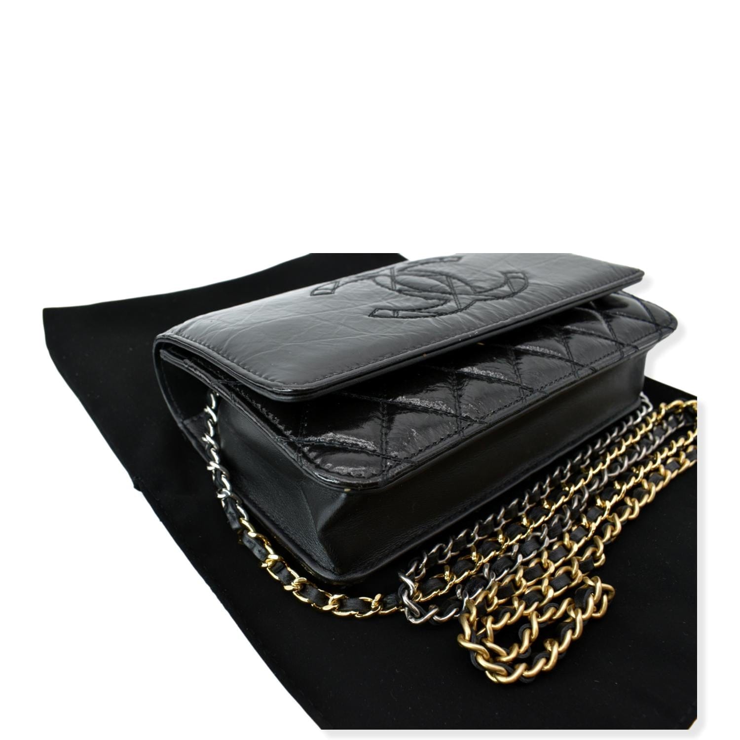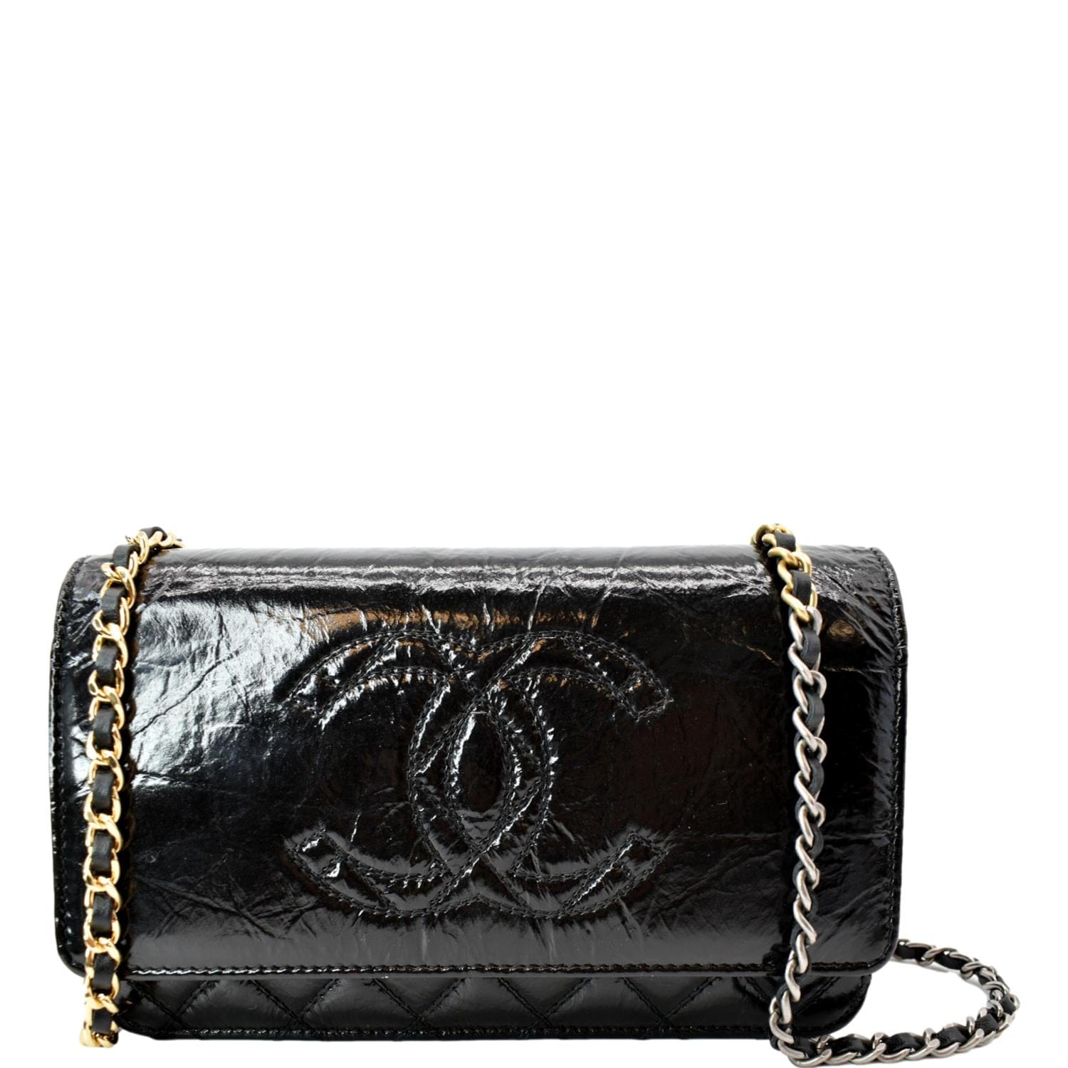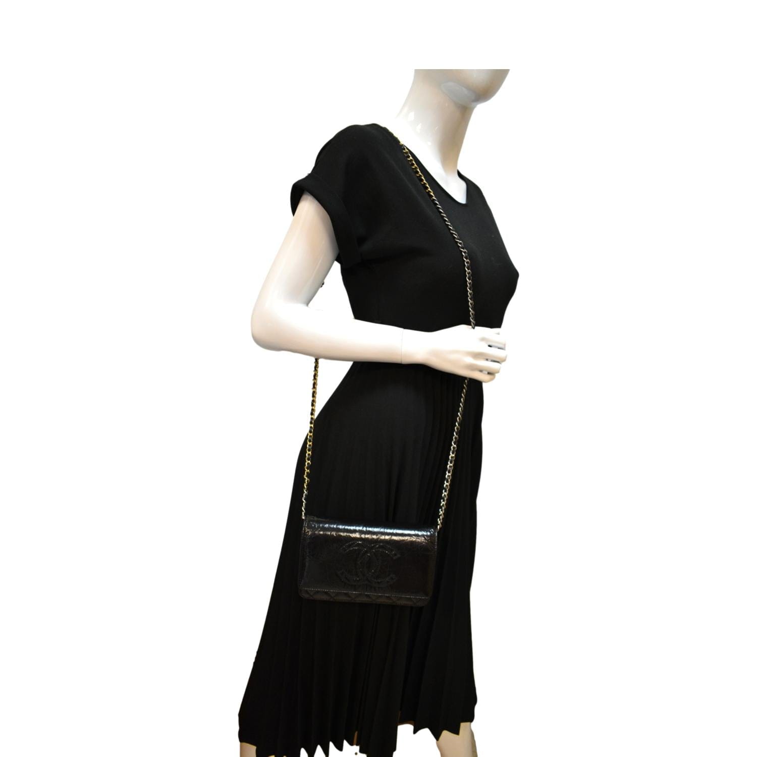 CC WOC Patent leather Wallet On Chain Crossbody Bag Black