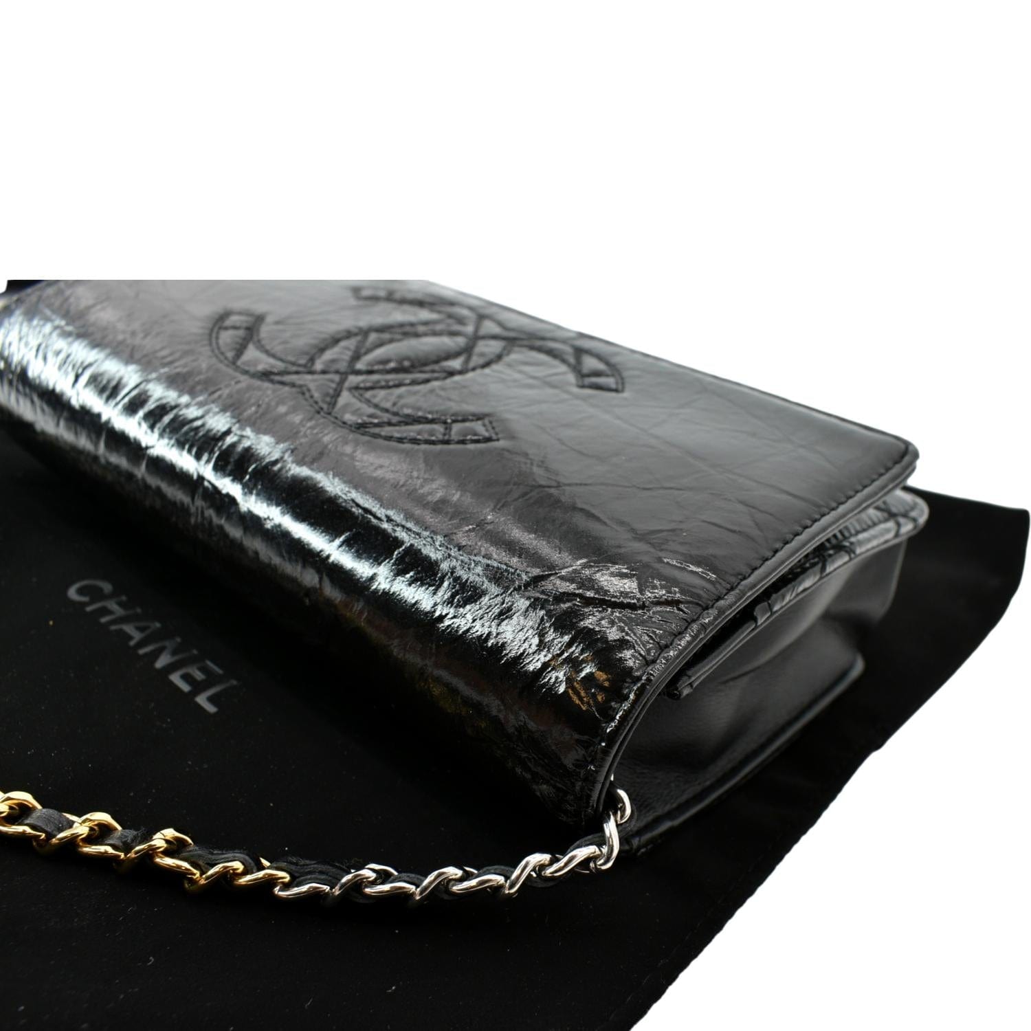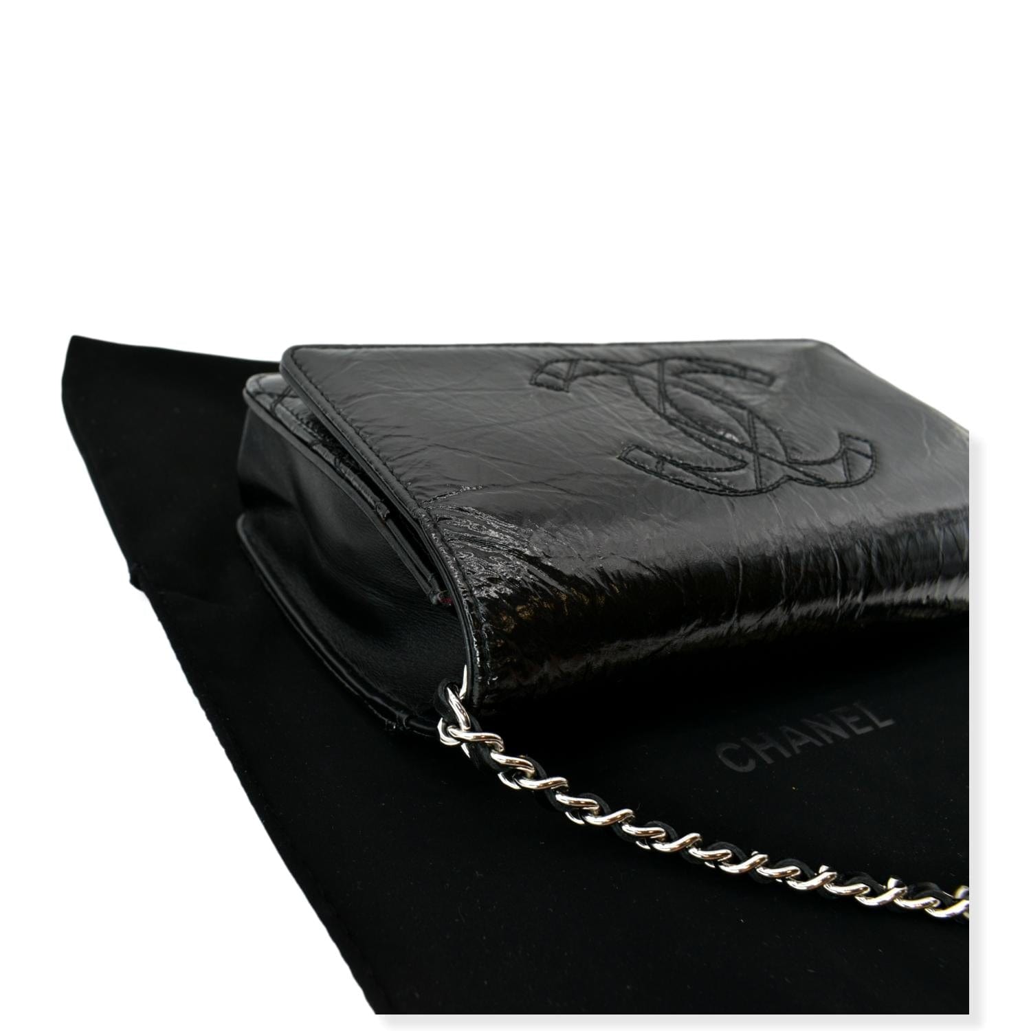 CHANEL CC WOC Patent leather Wallet On Chain Crossbody Bag Black