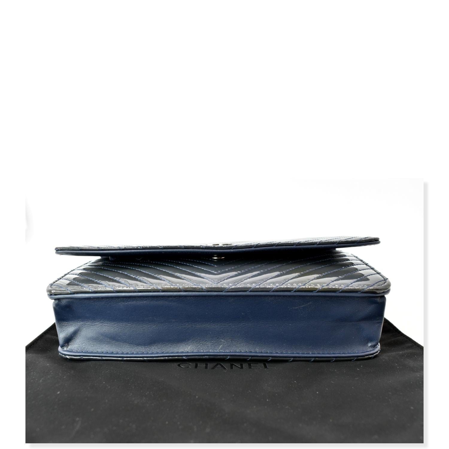 CHANEL WOC Chevron Patent Leather Crossbody Wallet On Chain Bag Blue