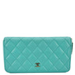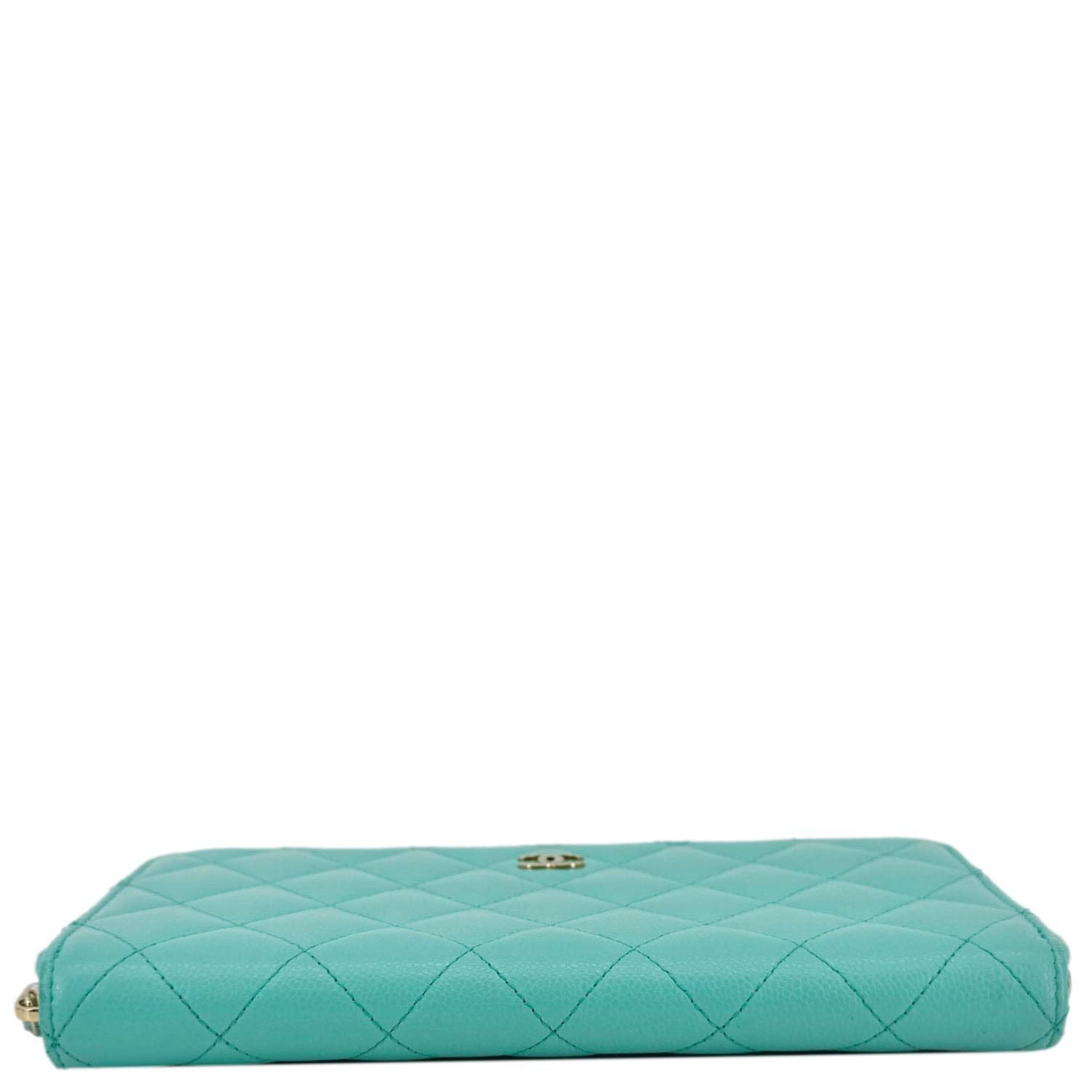CHANEL Zip Around Quilted Caviar Leather Wallet Turquoise