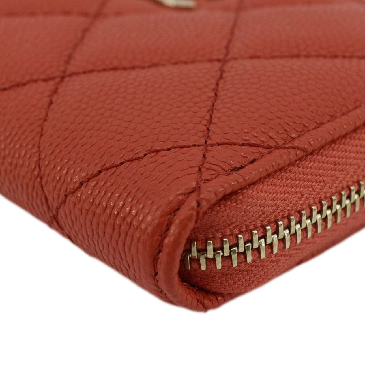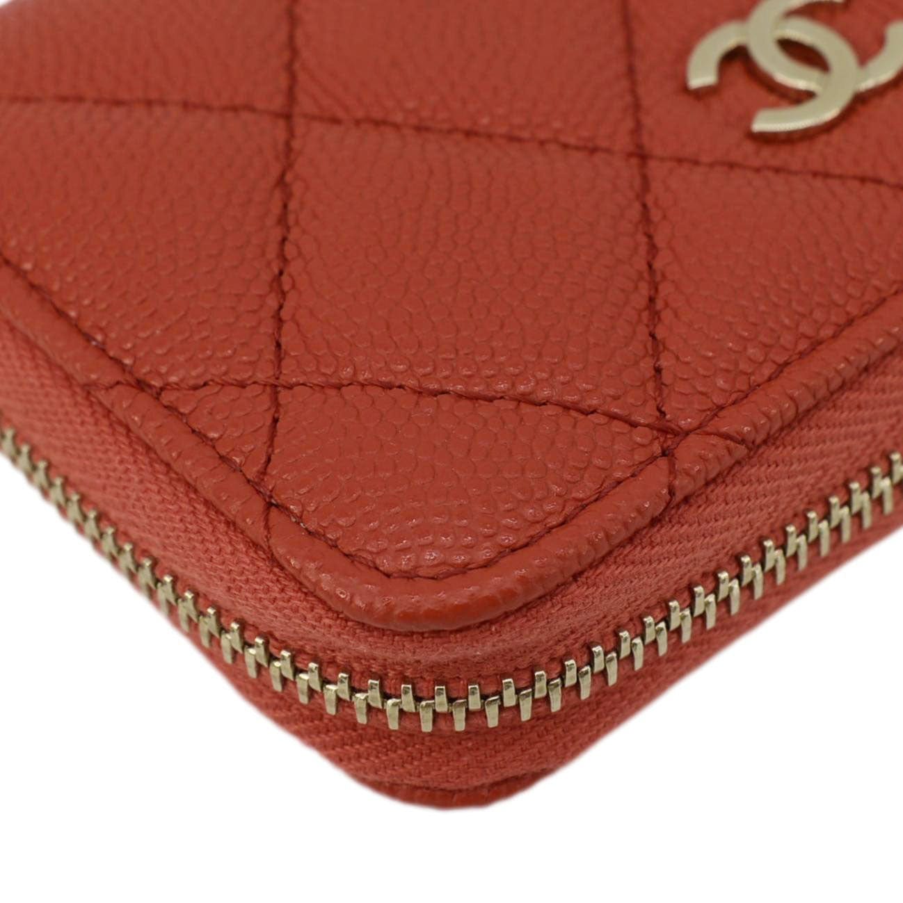 CHANEL Zipped Quilted Caviar Leather Coin Purse Red