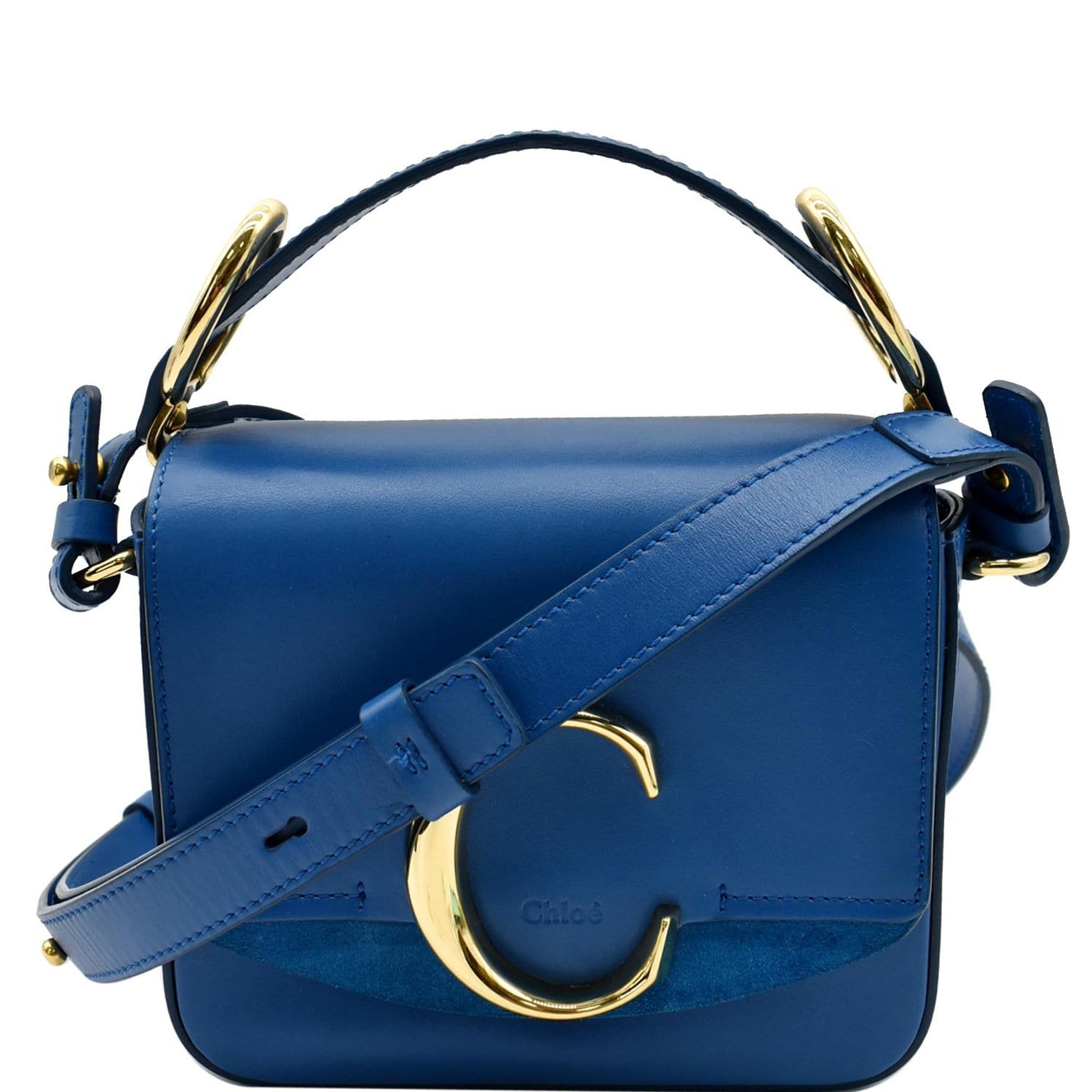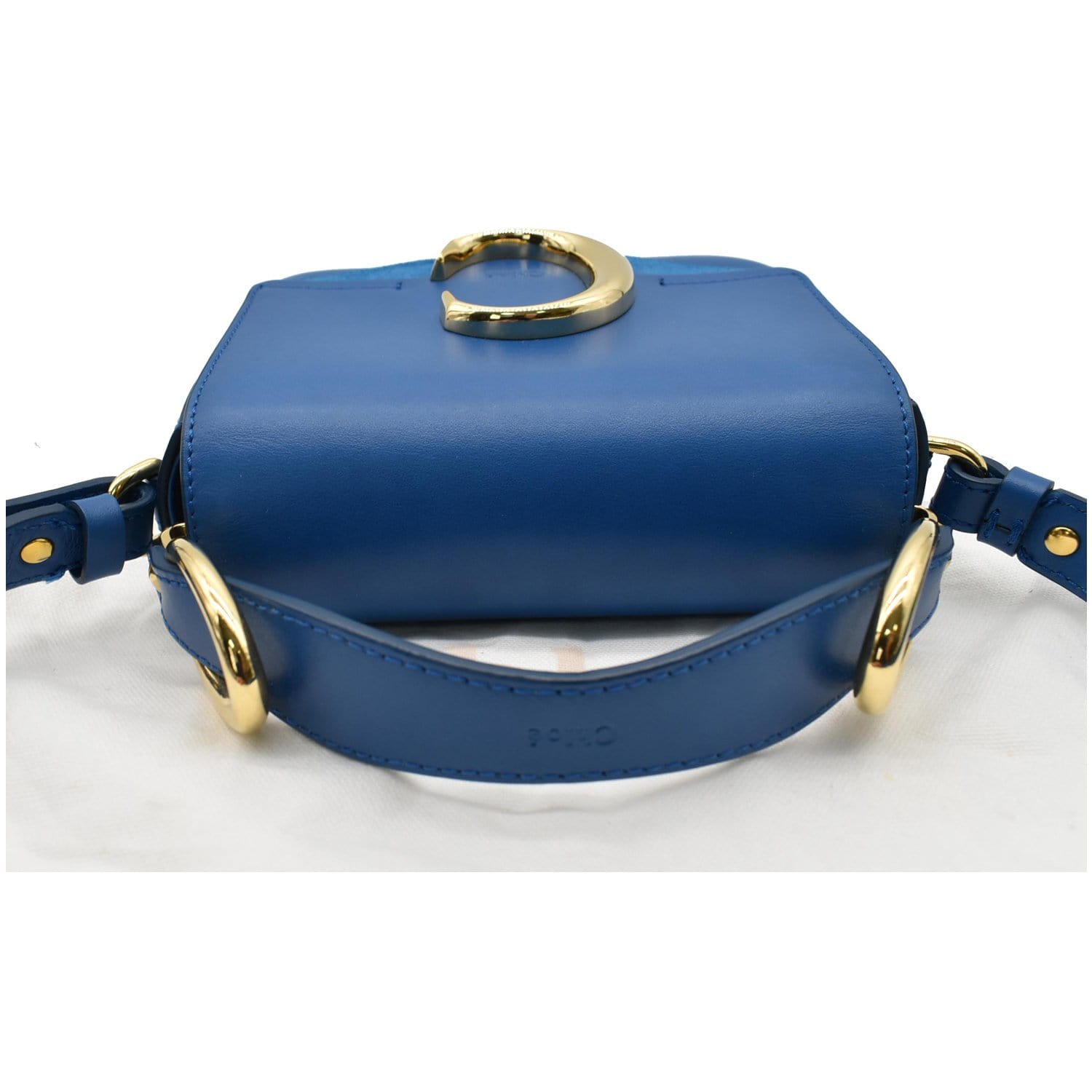 CHLOE Mini C Flap Suede Leather Crossbody Bag Blue