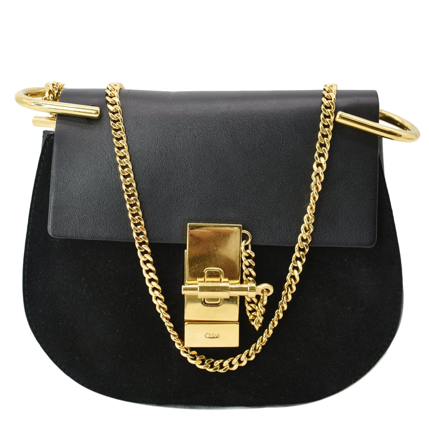 CHLOE Mini Drew Suede Calfskin Leather Crossbody Bag Black