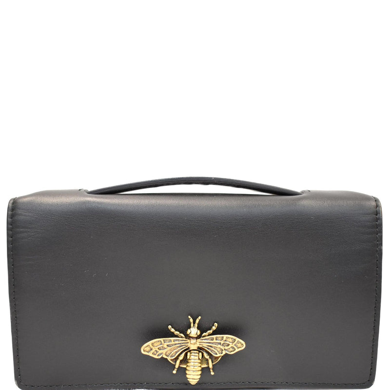 Christian Dior Bee Leather Pouch Clutch Bag Black