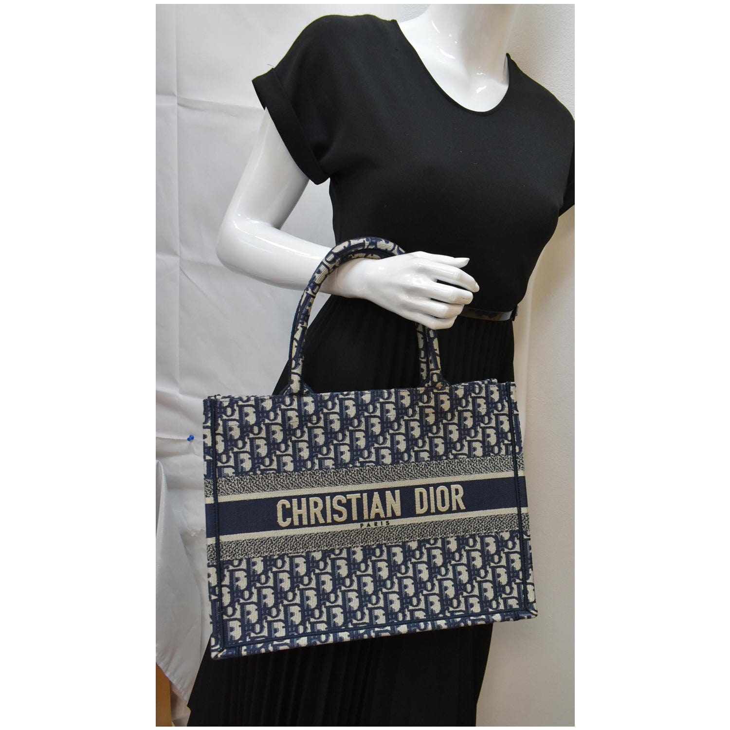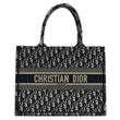 CHRISTIAN DIOR Book Medium Oblique Embroidery Tote Bag Blue