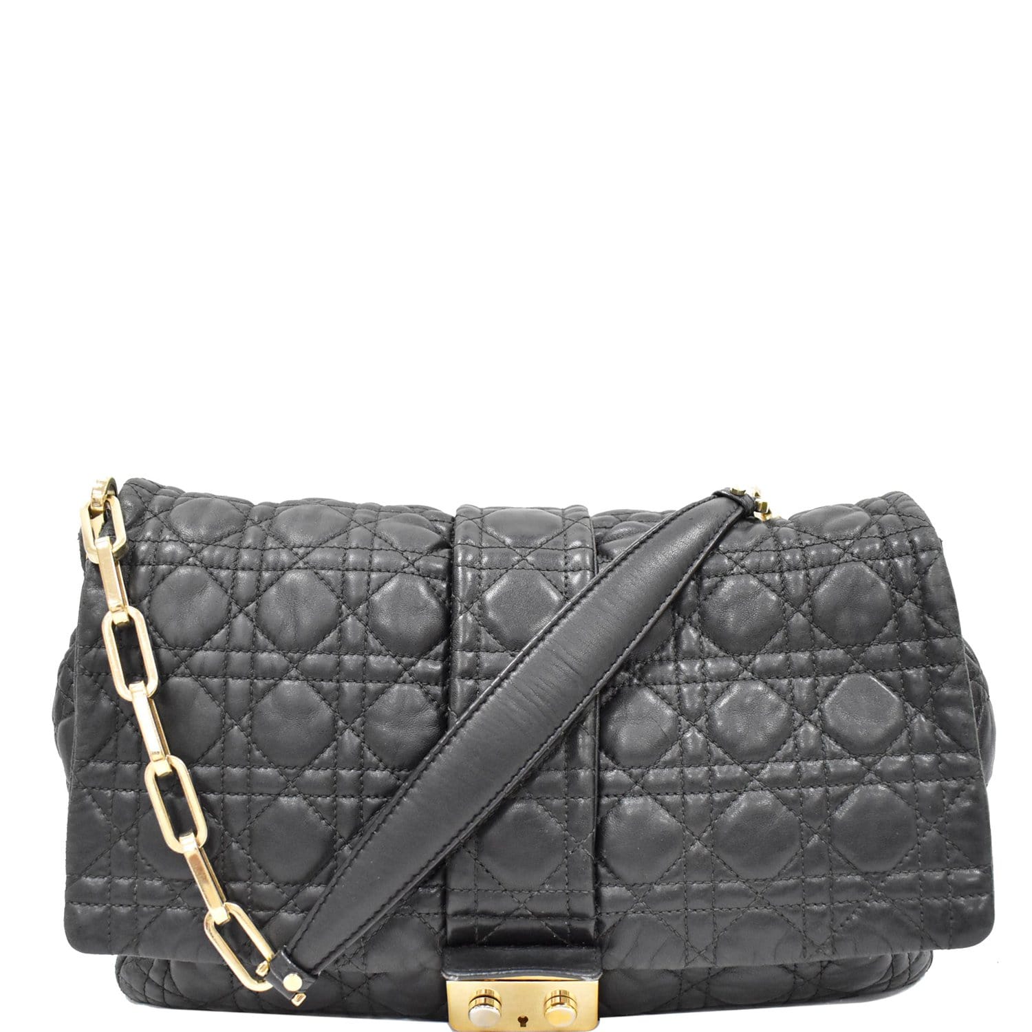 CHRISTIAN DIOR Cannage New Lock Flap Leather Shoulder Bag Black