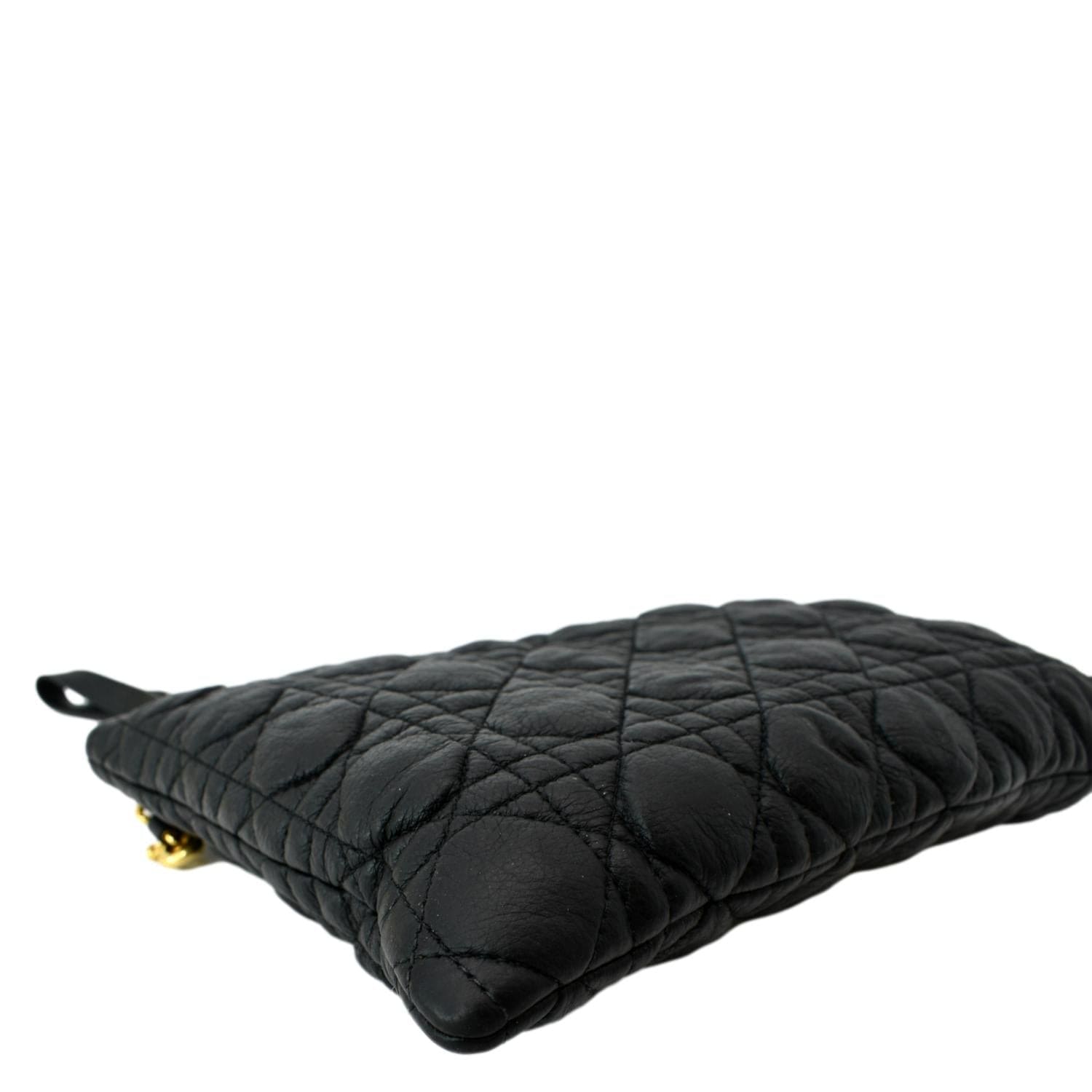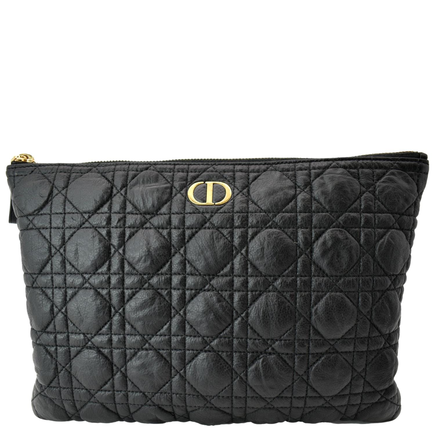 CHRISTIAN DIOR Caro Daily Cannage Calfskin Zipped Pouch Black