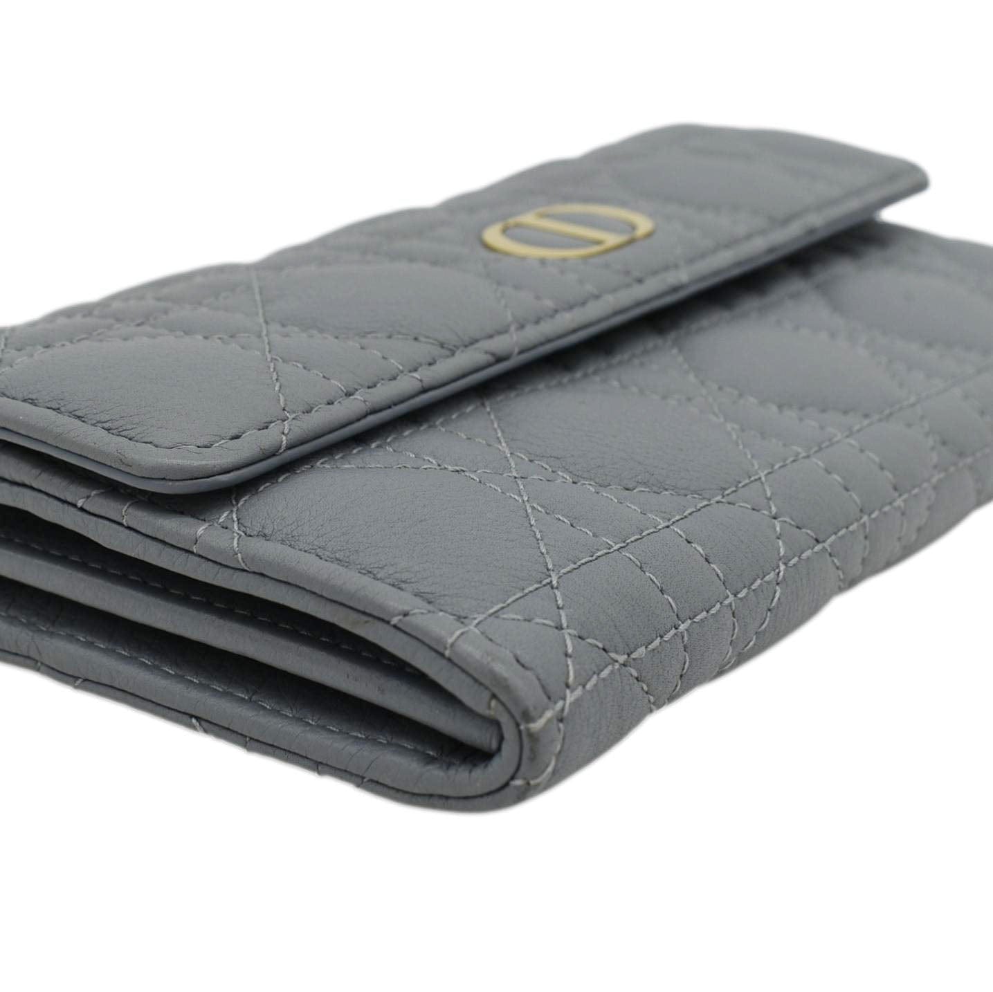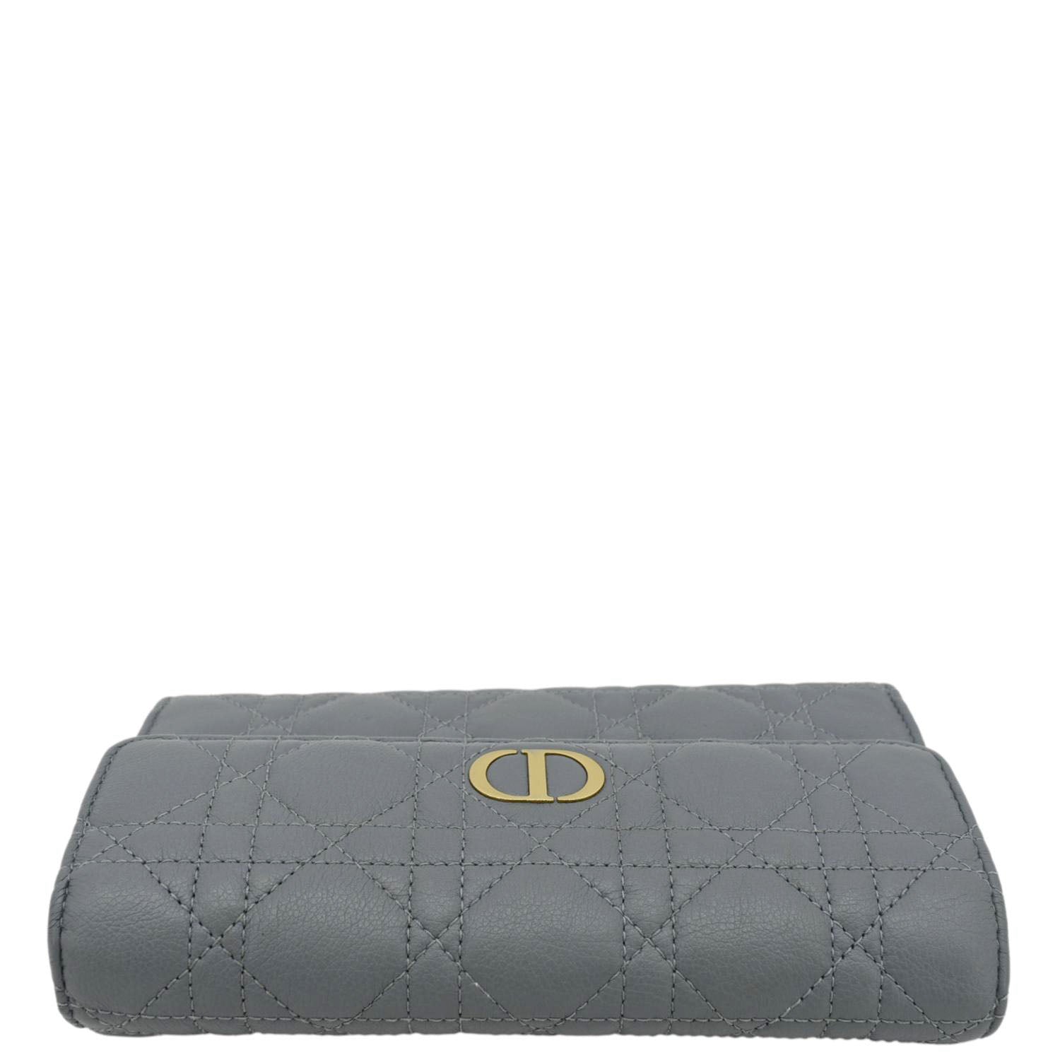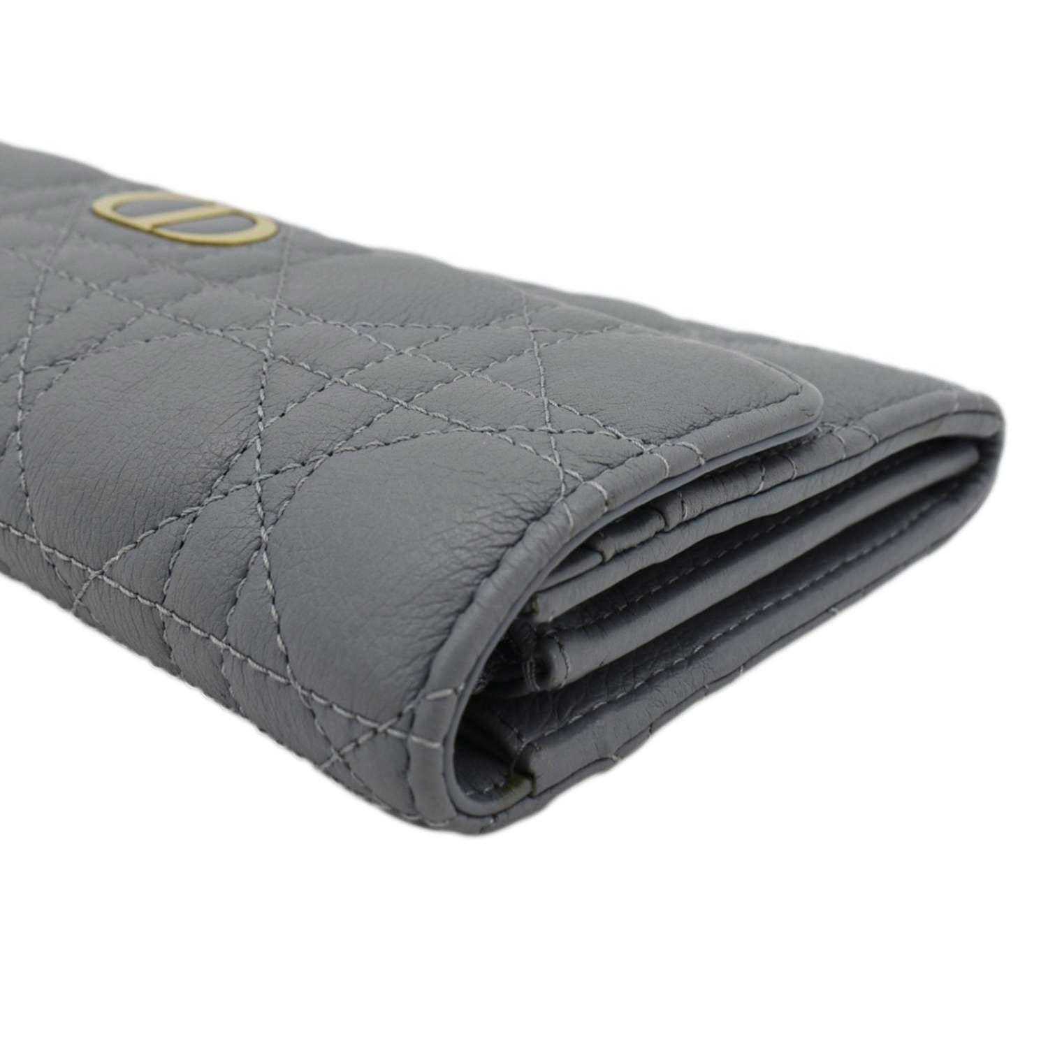 CHRISTIAN DIOR Caro Orchid Cannage Calfskin leather Long Wallet Gray