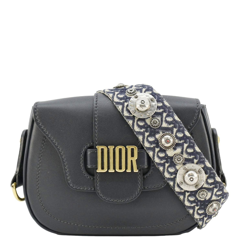 CHRISTIAN DIOR D Fence Calfskin Leather Saddle Bag Black