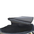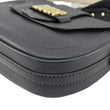 The CHRISTIAN DIOR D-Fence Saddle Bag in black calfskin leather features a sleek, structured design with a bold "D" logo closure. Its iconic silhouette and adjustable strap offer a modern, edgy twist on the classic Dior Saddle bag.