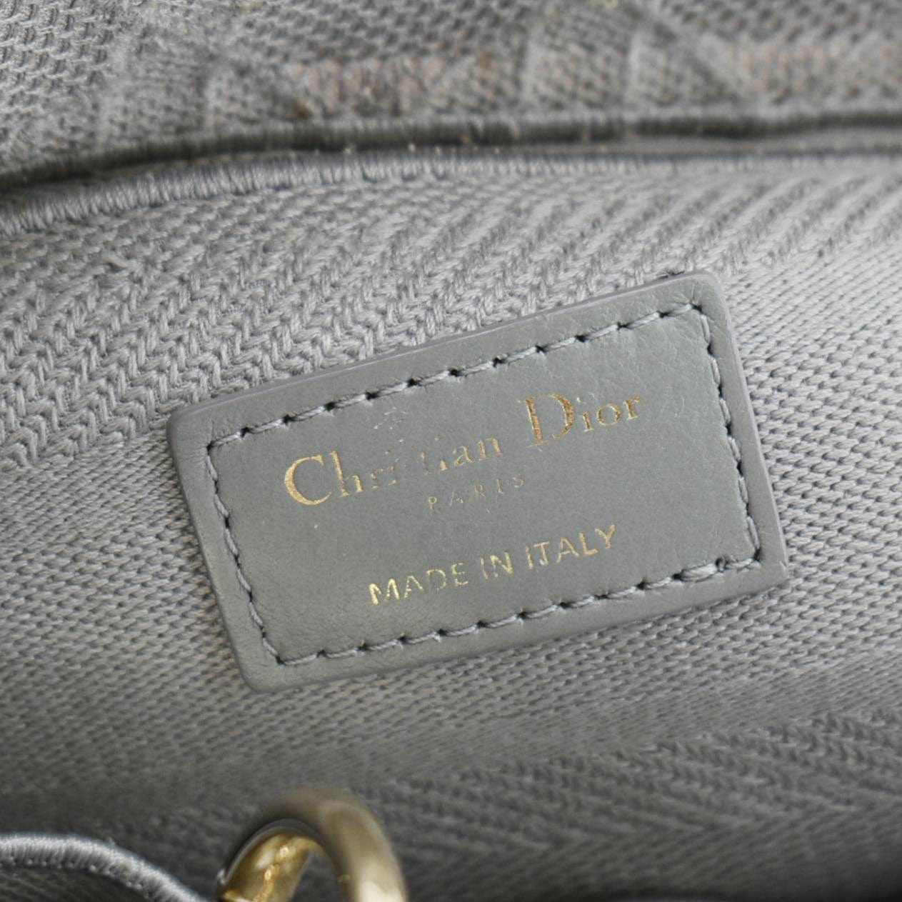CHRISTIAN DIOR Lady dior D-Lite Embroidered Cannage Canvas Shoulder Bag Gray