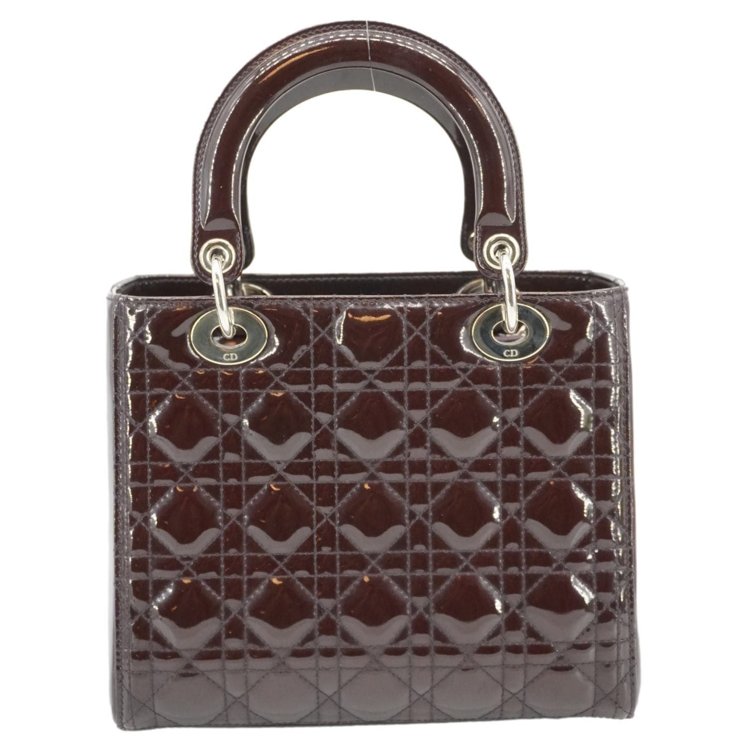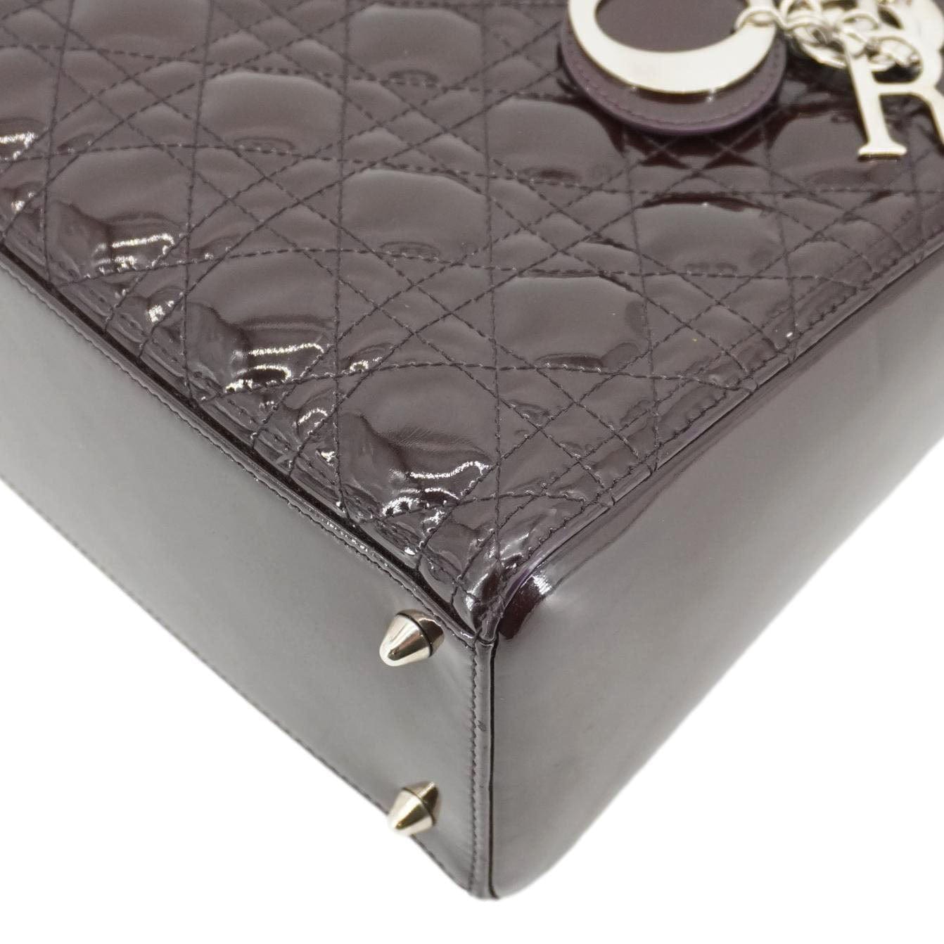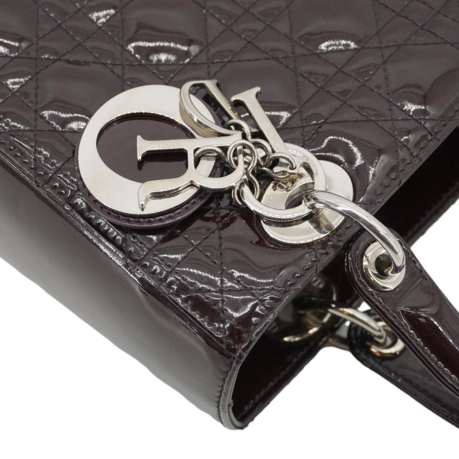 Lady Dior Quilted Patent Leather Shoulder Bag Burgundy