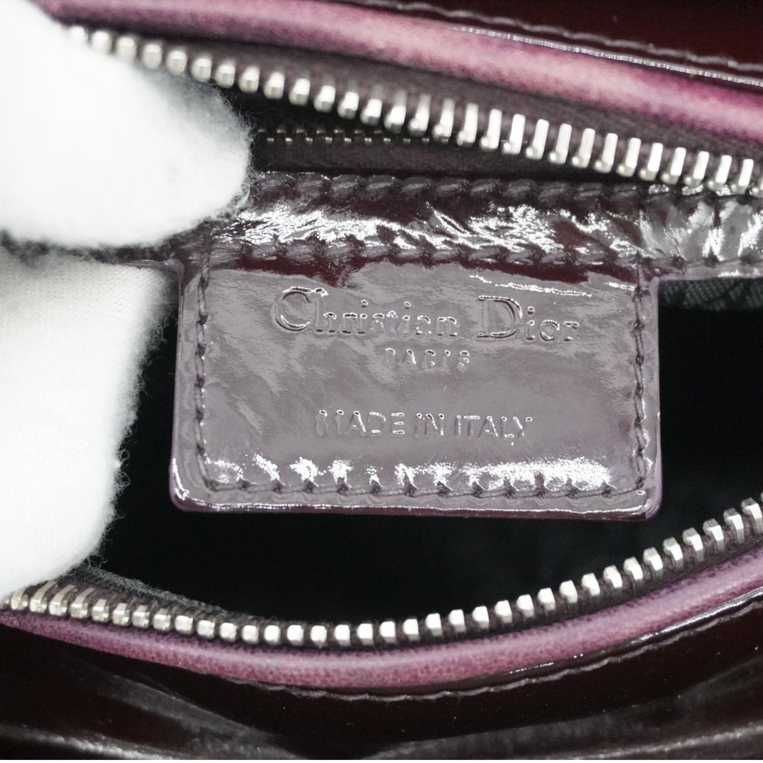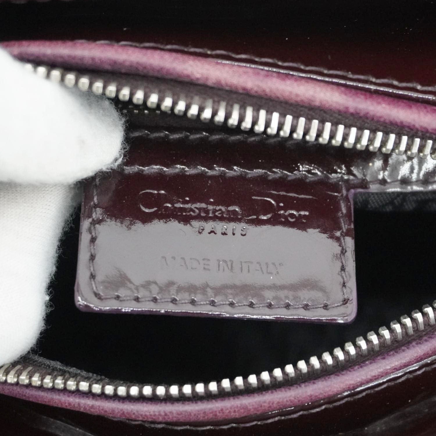 CHRISTIAN DIOR Lady Dior Quilted Patent Leather Shoulder Bag Burgundy