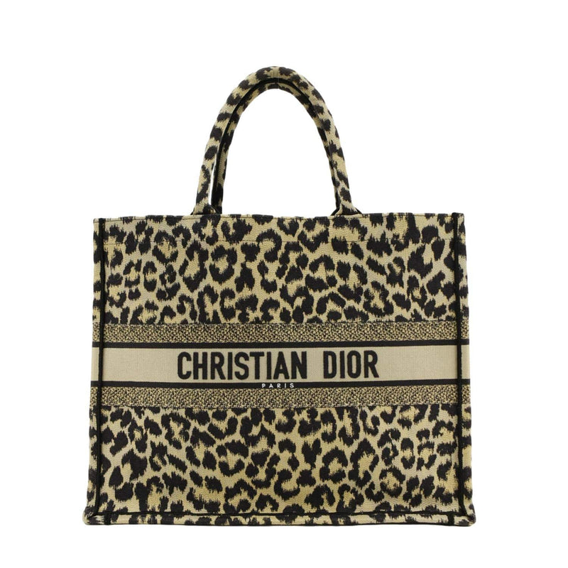 The Christian Dior Leopard Medium Book Tote Mizza in beige features bold leopard embroidery, inspired by the iconic Mizza print. Its spacious, structured design and standout pattern make it both a statement piece and a practical everyday tote.
