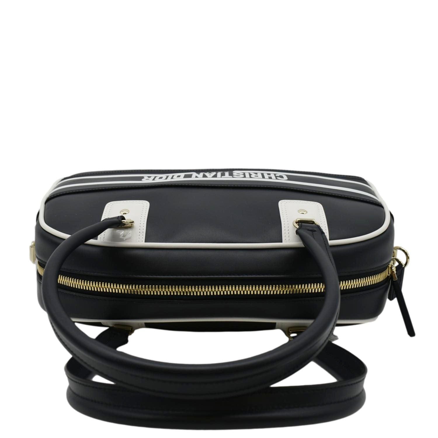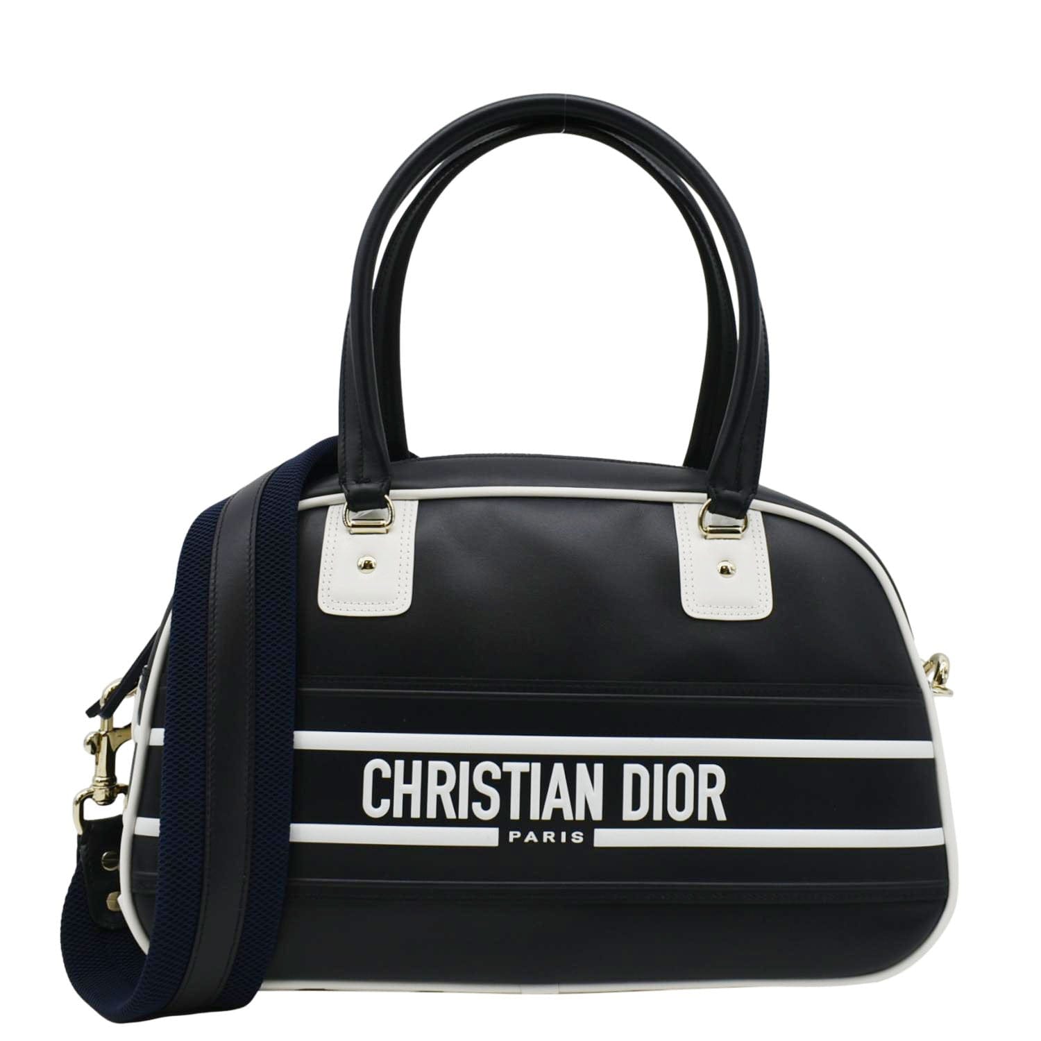 Elevate your look with the "CHRISTIAN DIOR Vibe Zip Bowling Medium Leather Shoulder Bag" in elegant Navy Blue (almost black), blending luxury and practicality for a sophisticated and versatile accessory.
