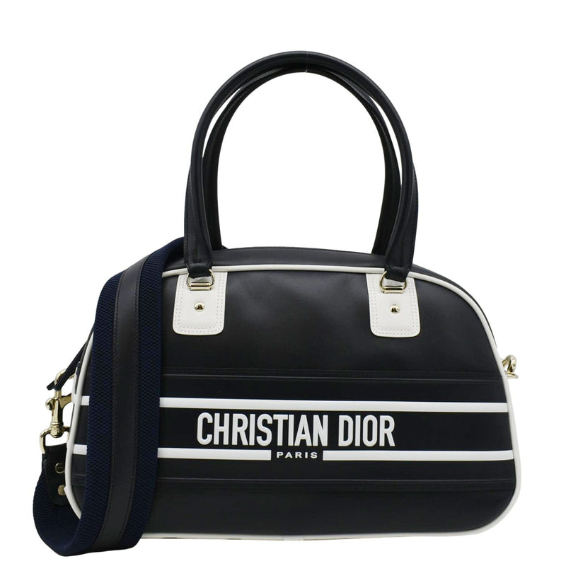 CHRISTIAN DIOR Vibe Zip Bowling Medium Leather Shoulder Bag Navy Blue
