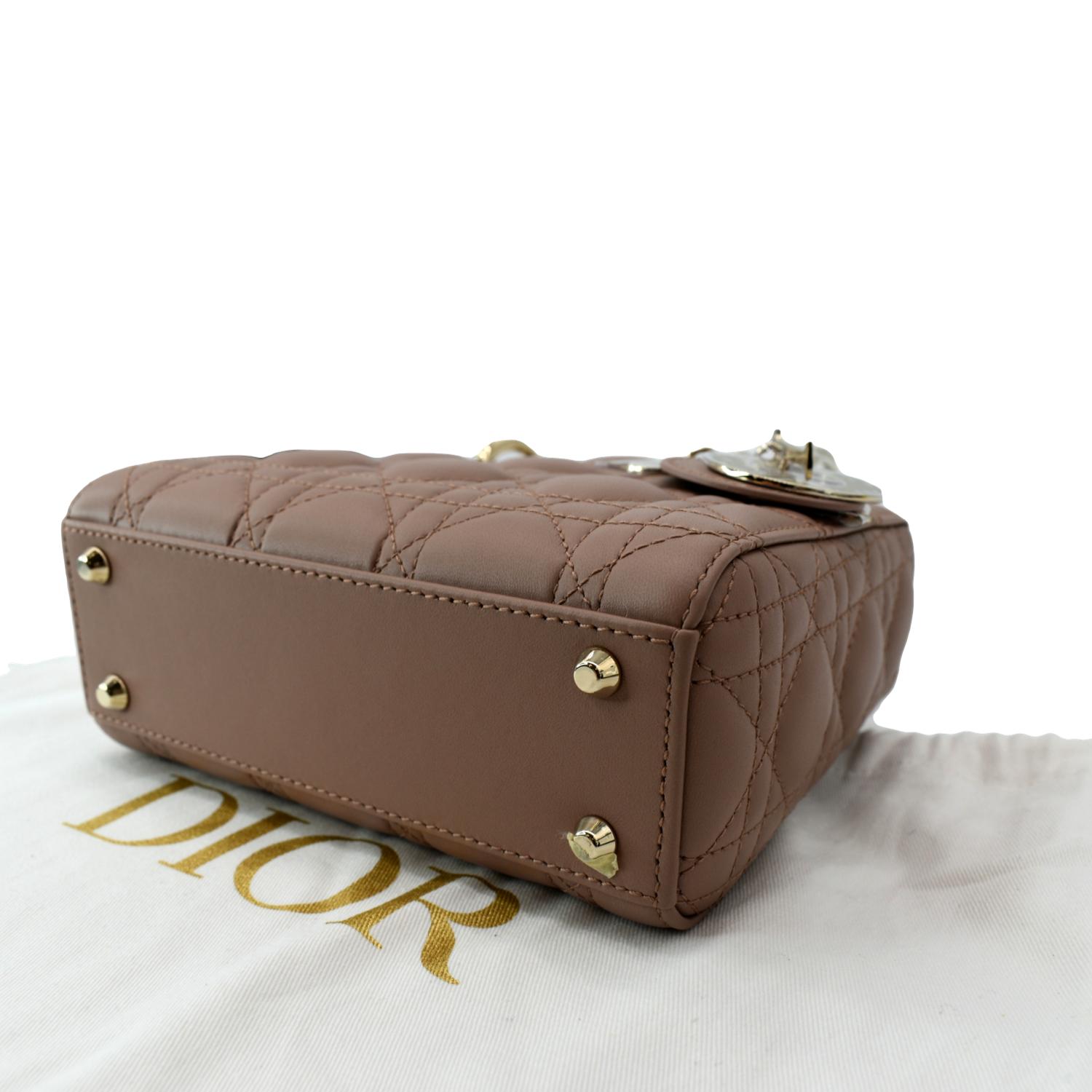 CHRISTIAN DIOR Mini Lady Dior Cannage Calfskin Leather Shoulder Bag Blush