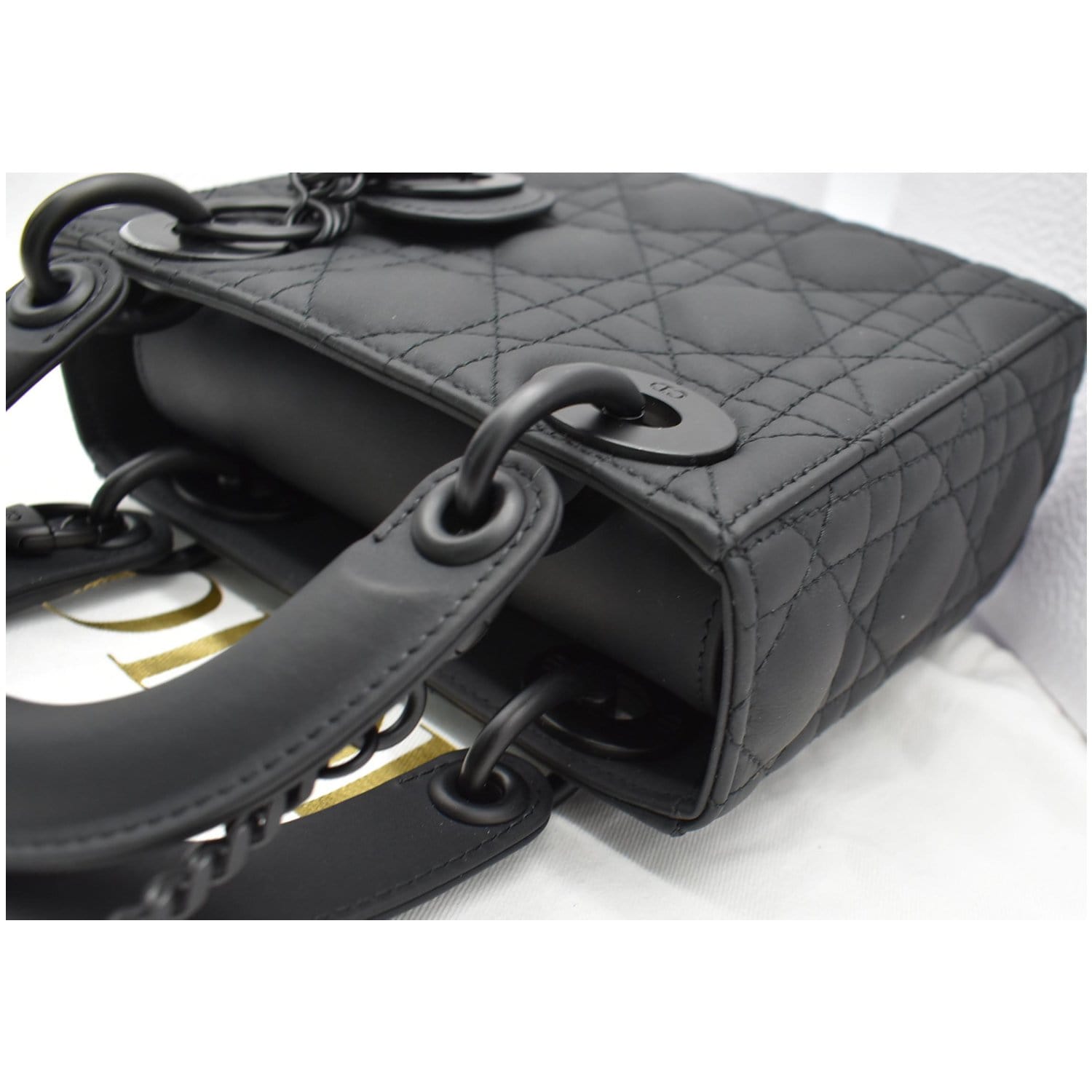 Mini Lady Dior Cannage Calfskin Leather Shoulder Bag Matte Black