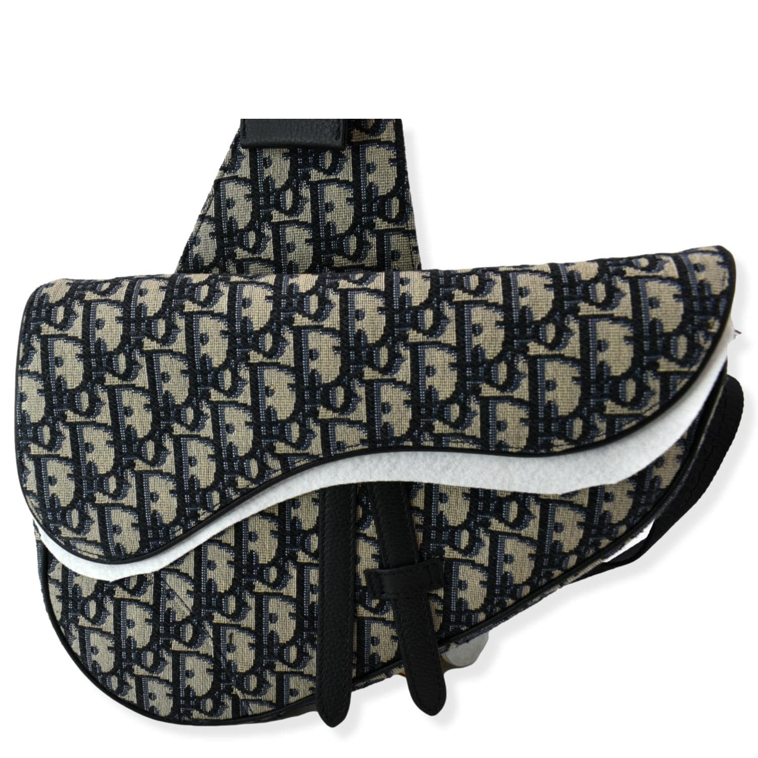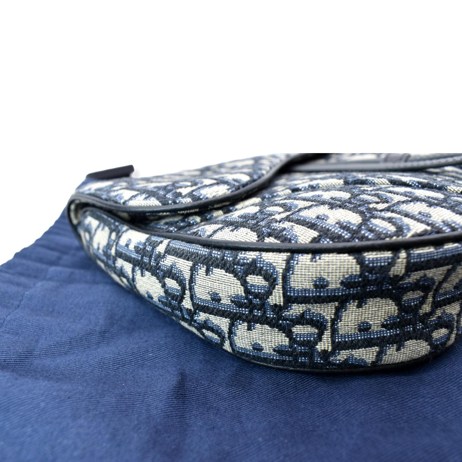 CHRISTIAN DIOR Saddle Oblique Jacquard Crossbody Bag Navy Grey