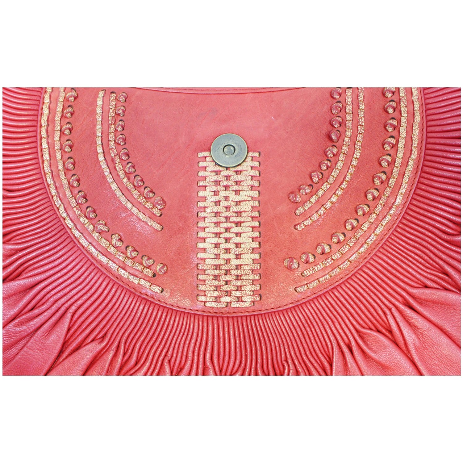 Plisse Pleated Leather Hobo Bag Red - 20% OFF