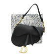 CHRISTIAN DIOR Saddle Grained Leather Satchel Shoulder Bag Black