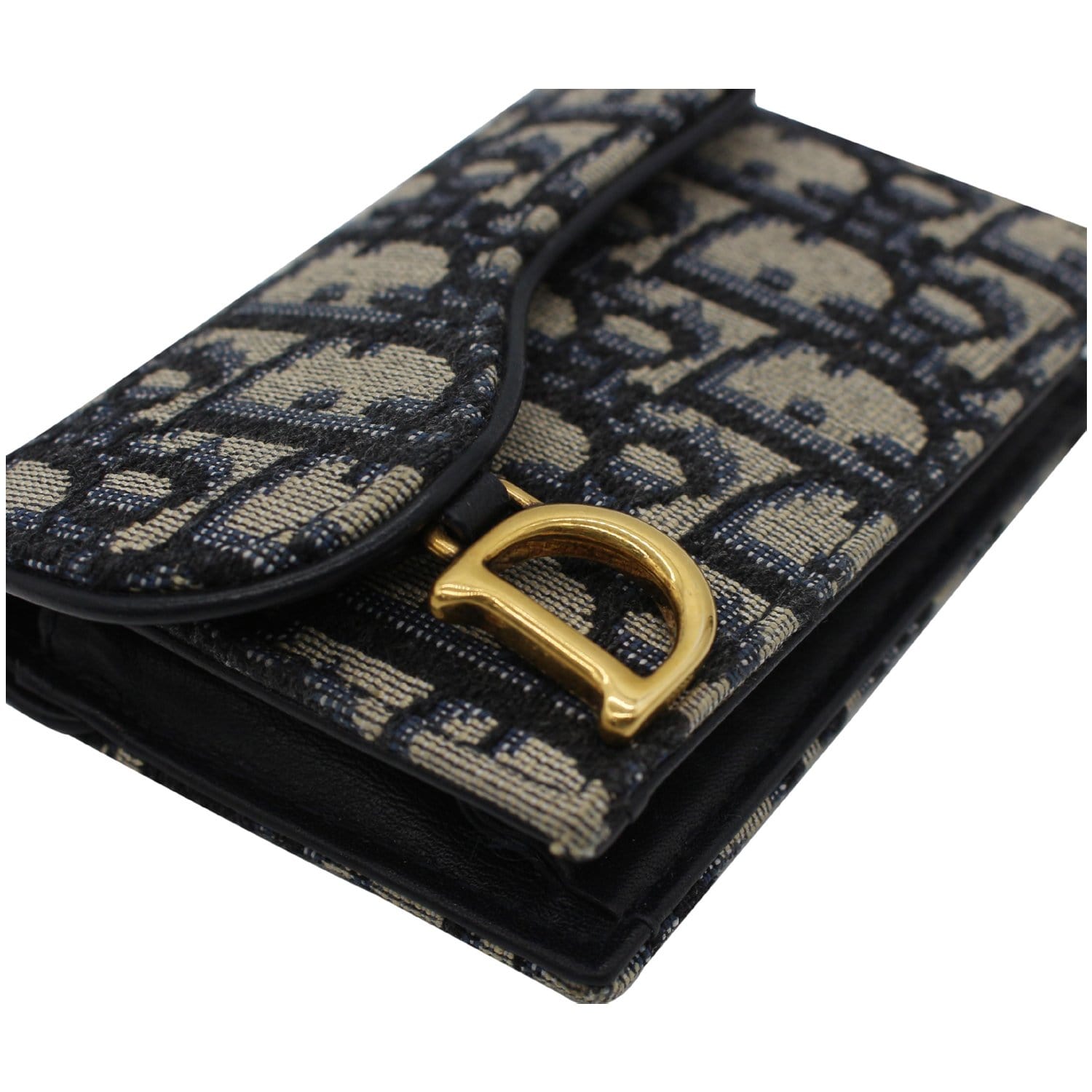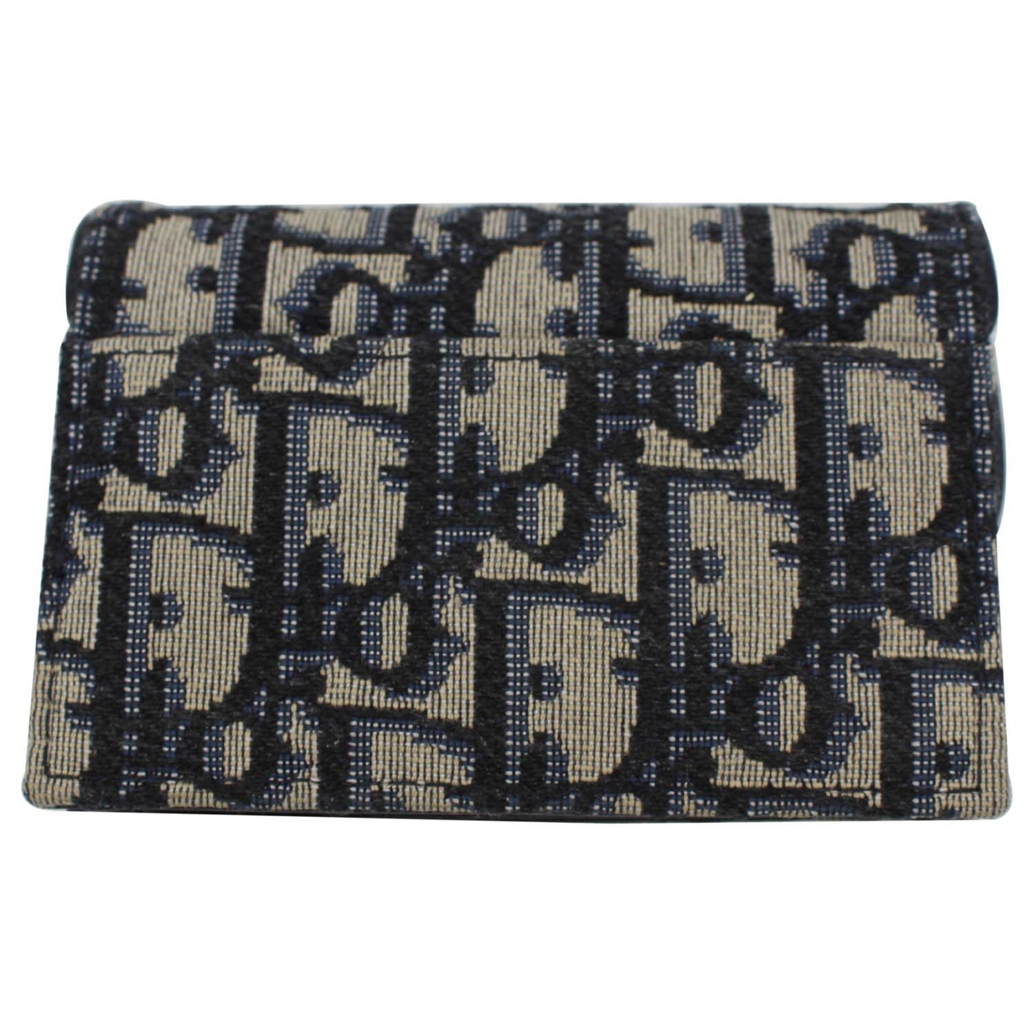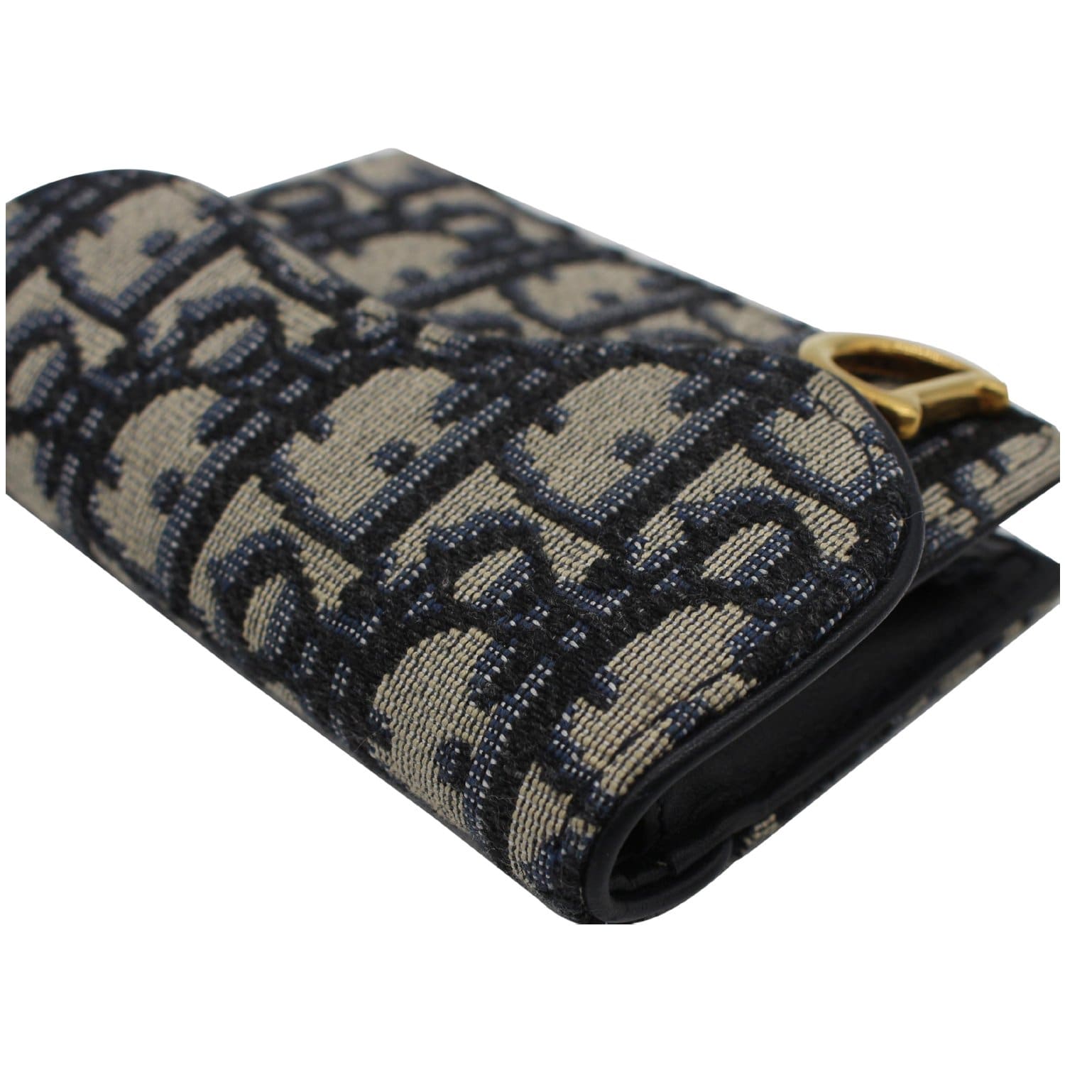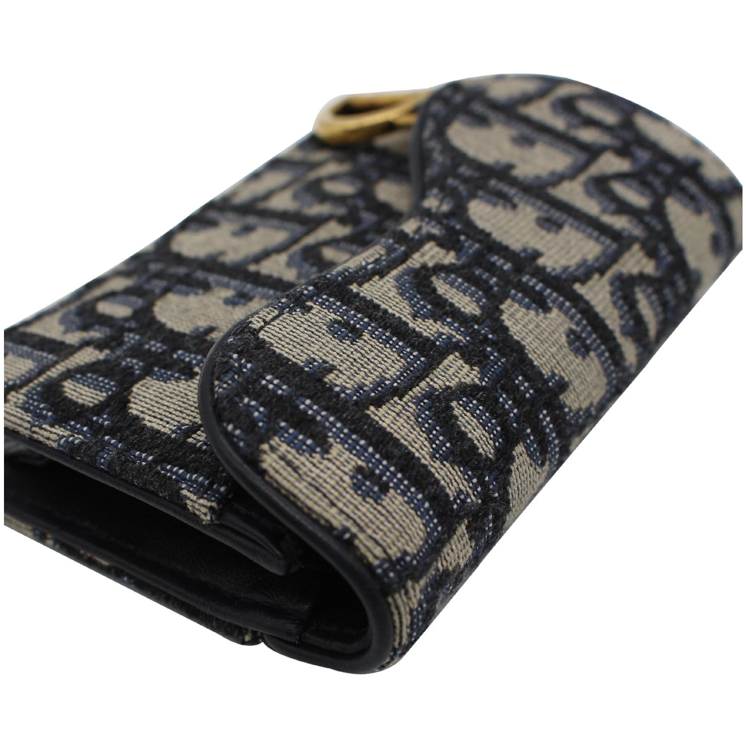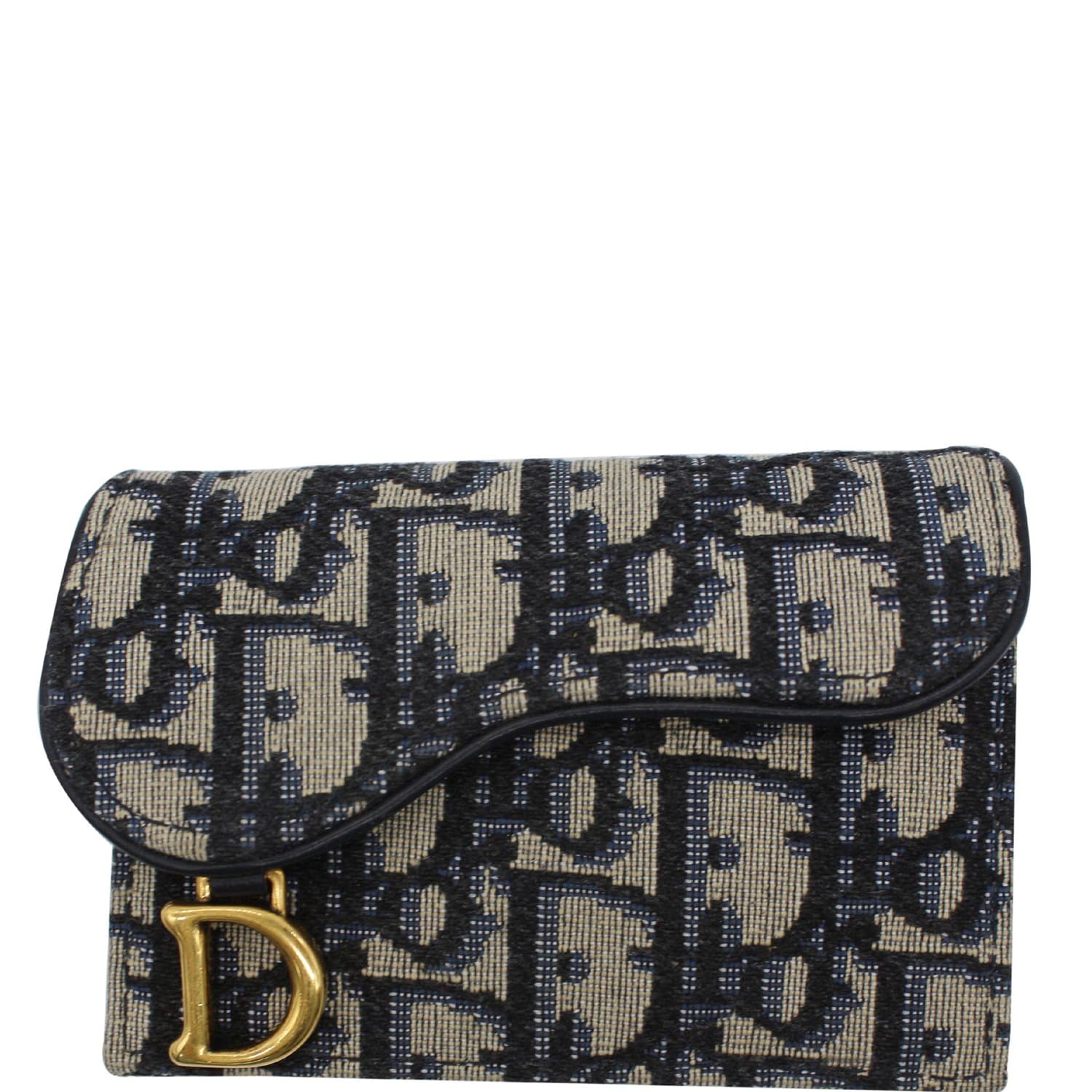 CHRISTIAN DIOR Saddle Flap Jacquard Canvas Card Holder Beige