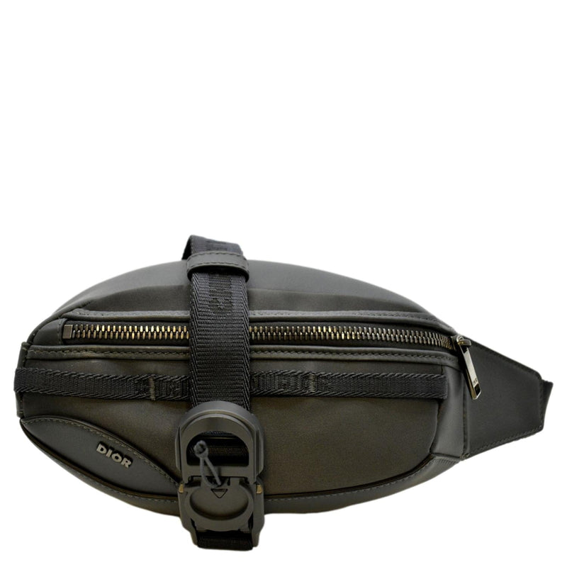 CHRISTIAN DIOR Scarab Calfskin Leather Crossbody Bag Grey