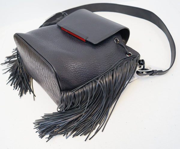 Black Pebbled Leather Fringe Lucky L Backpack - Final Call