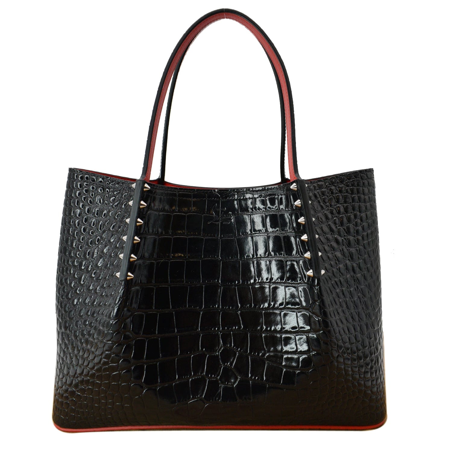 CHRISTIAN LOUBOUTIN Cabarock Croc-Embossed Leather Tote Bag Black