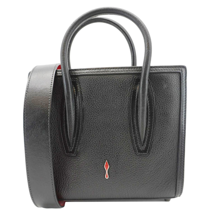 The CHRISTIAN LOUBOUTIN Paloma Mini Leather Tote Bag in black exudes sophistication with its sleek leather design and signature red accents. Compact yet stylish, it’s perfect for elevating any look.