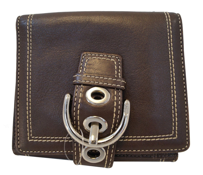 Hamptons Soho Buckle Brown Leather Bifold Compact Wallet - Sale