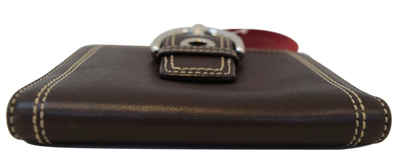 COACH Hamptons Soho Buckle Brown Leather Bifold Compact Wallet - Sale