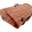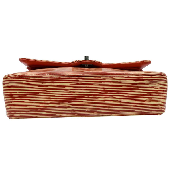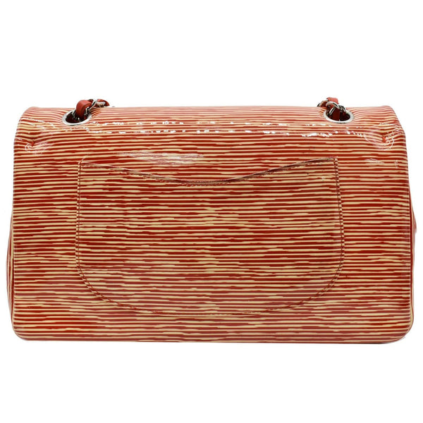 CHANEL Women Classic Medium Double Flap Striped Patent Leather Shoulder Bag White/Red